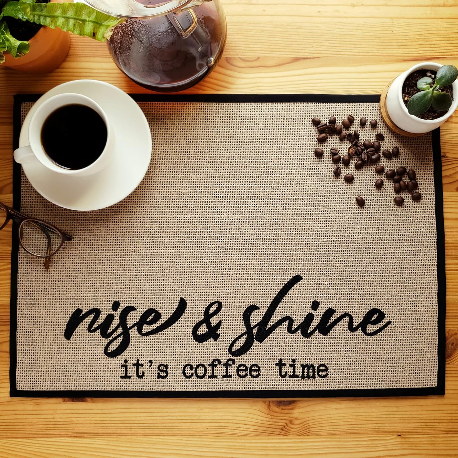 RISE & SHINE IT’S COFFEE TIME – A unique, memorable gift and reminder to fill your mug every day! Our coffee mat gives the simple design style of a coffee sign that also works perfectly with your Keurig machine.
