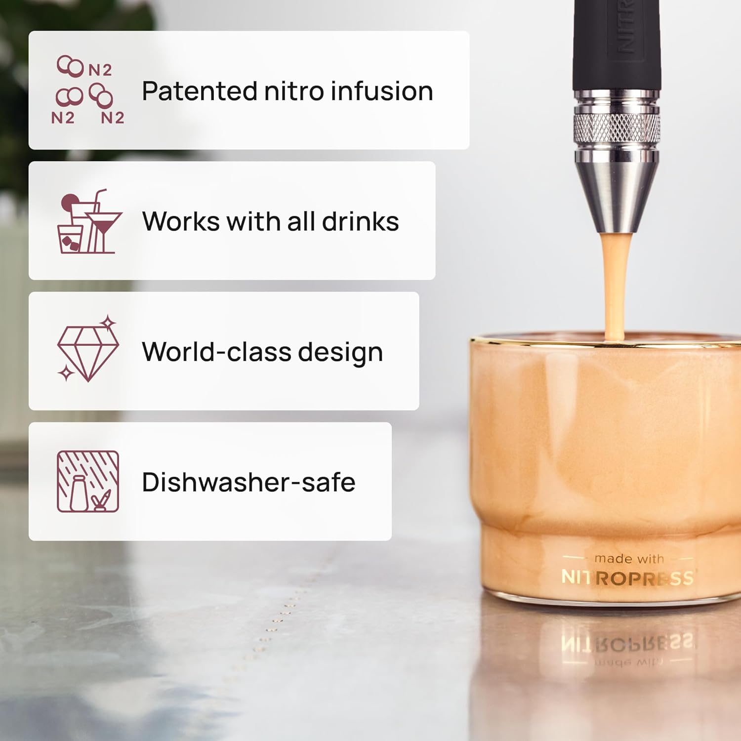 NitroPress Nitro Cold Brew Maker And Dispenser, Nitrogen Infuser, Cold Brew Kit with 10 Nitrogen Cartridges