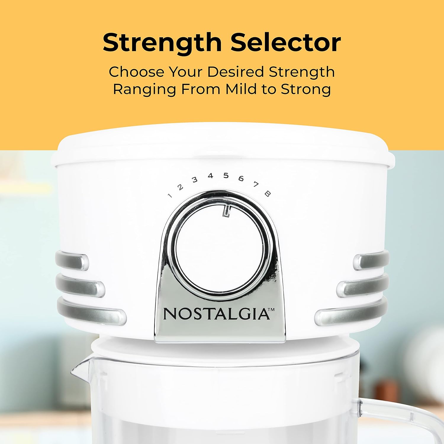 Nostalgia 3-Quart Iced Tea & Coffee Brewing System With Double-Insulated Pitcher, Strength Selector & Infuser Chamber, Also Perfect For Lattes, Lemonade, Flavored Water, White