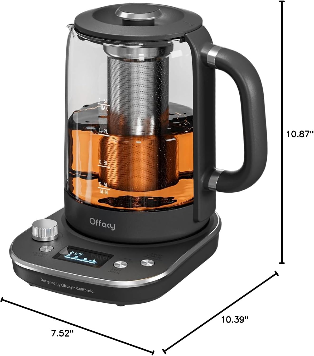 Offacy Electric Tea Kettle, 1.6L 1200W Fast Heating 9 Smart Presets with Removable Infuser Temperature Control 2H Keep Warm, BPA-Free Glass Teapot for Coffee, Boil-dry Protect, Easy to Clean, Black