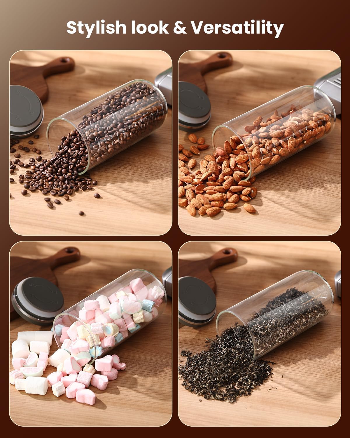 Premium Quality Construction: Constructed with high borosilicate glass for exceptional temperature resistance and a PP lid featuring a BPA-free silicone seal, this coffee container keeps your beans fresh and visible, preserving their quality