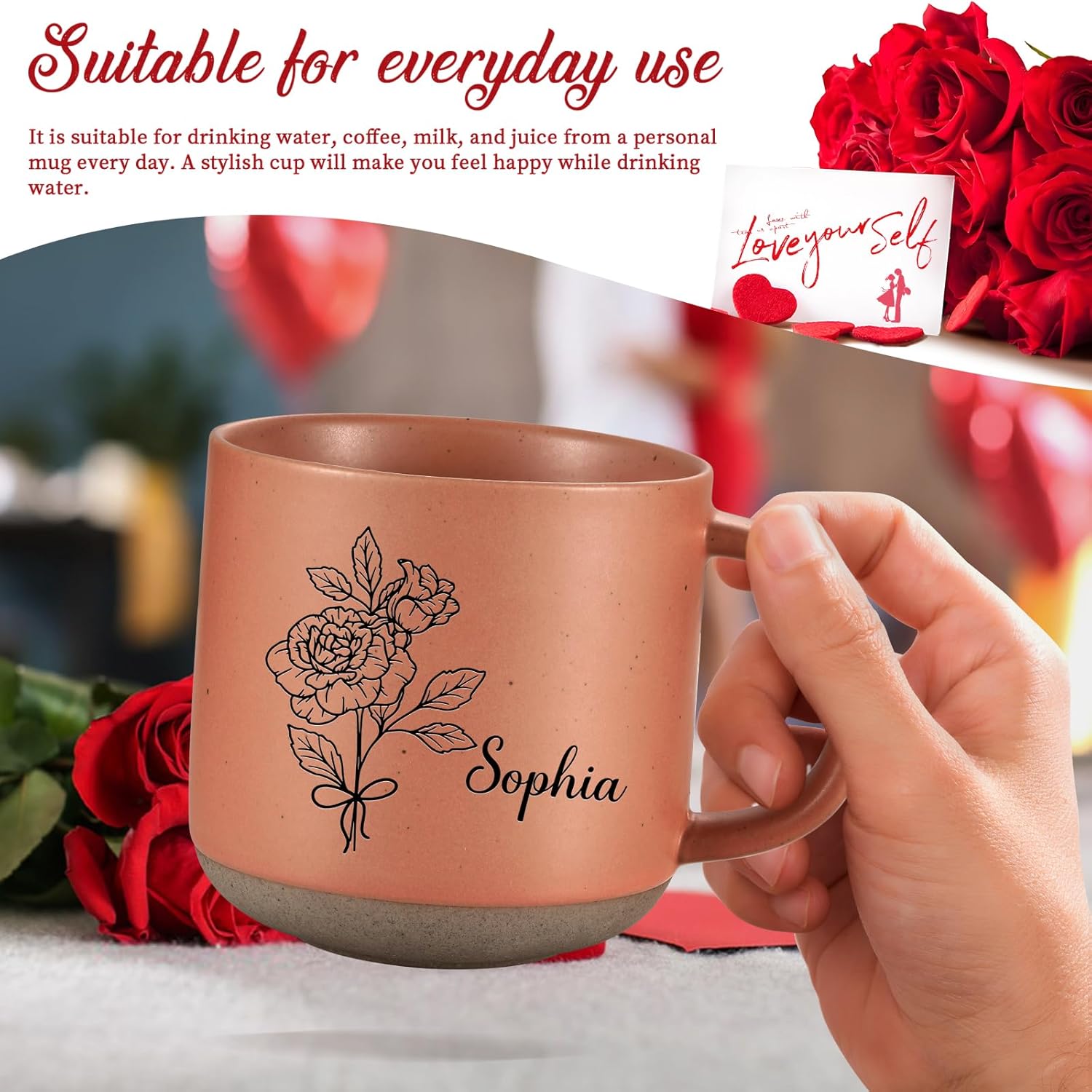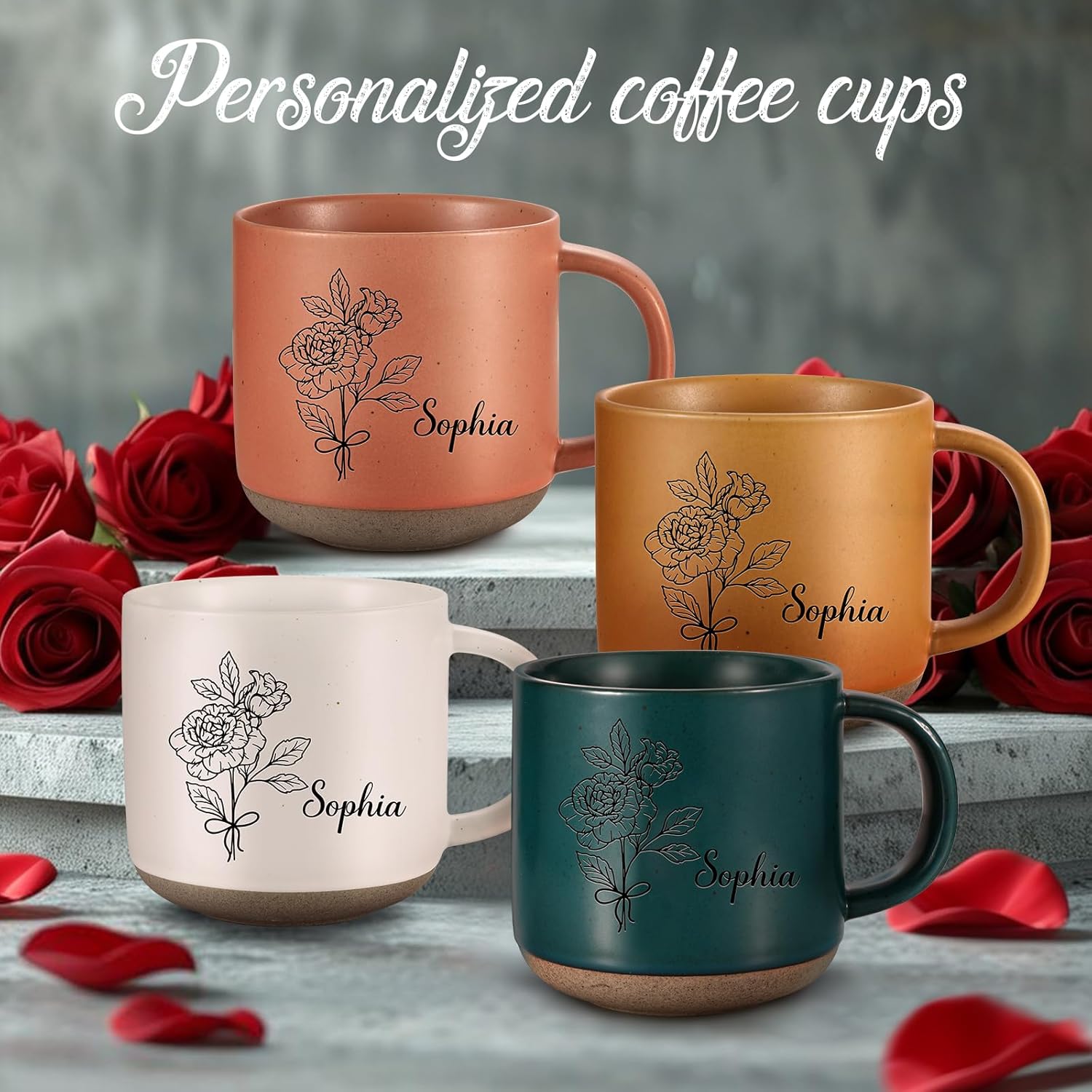 Personalized Coffee Mug: Our personalized coffee mug is practical with beautiful birth flower design. You can custom name or text on the mug. We offer black and white color to engrave name and birth flower. Choose the birth flower design, customized the name or text for your loved one!