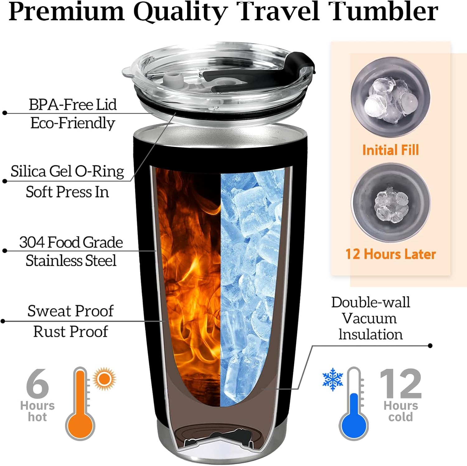 [Safe & Durable] Take your favorite beverages on the go in our durable and safe personalized 20oz travel tumbler. Made with food-grade 304 stainless steel, it can keep your drinks hot or cold for longer. With a 20 oz capacity and easy-to-clean design, it’s perfect for coffee, tea, smoothies, and more! Customize with your photo and text for a unique touch.