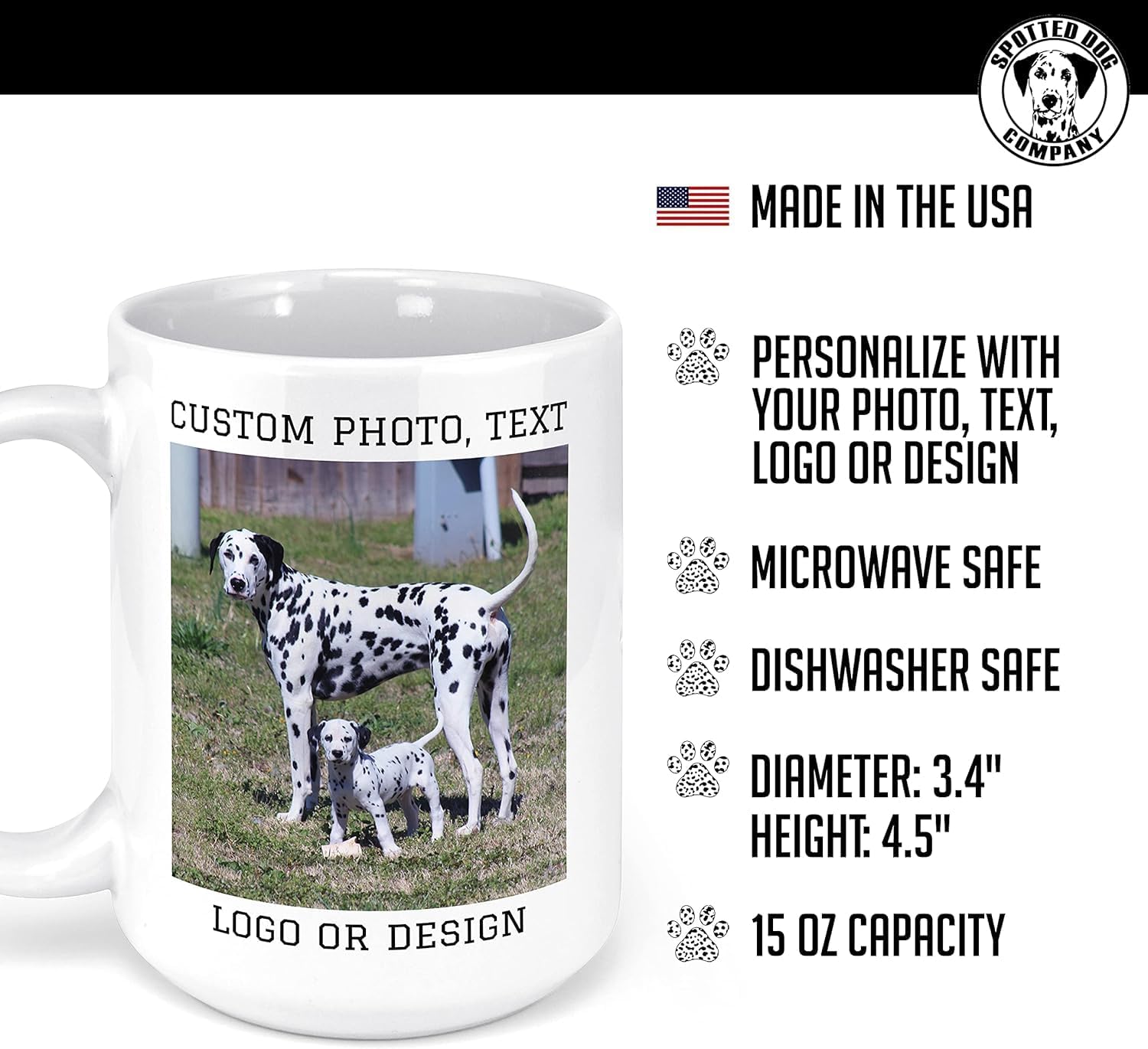 Personalized White 15oz Ceramic Coffee Mug with Custom Photo, Text, Logo or Design, DYE, Taza para Cafe Personalizadas con Fotos, Mother’s Day Gift, Great Gifts for Men, Women, Picture