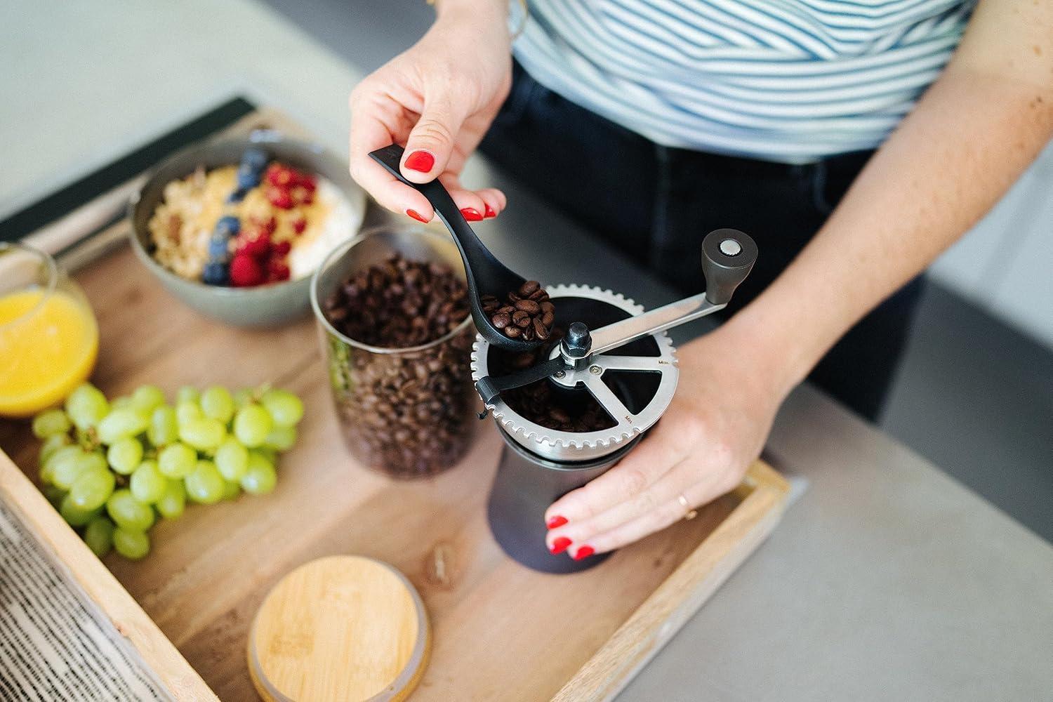 TIMELESS COFFEE MILL — The Kronos manual coffee mill enhances the flavors of the brews that you create. Precise and even grinding of coffee beans for up to two cups at a time. This timeless mill by Peugeot is engineered and manufactured in France