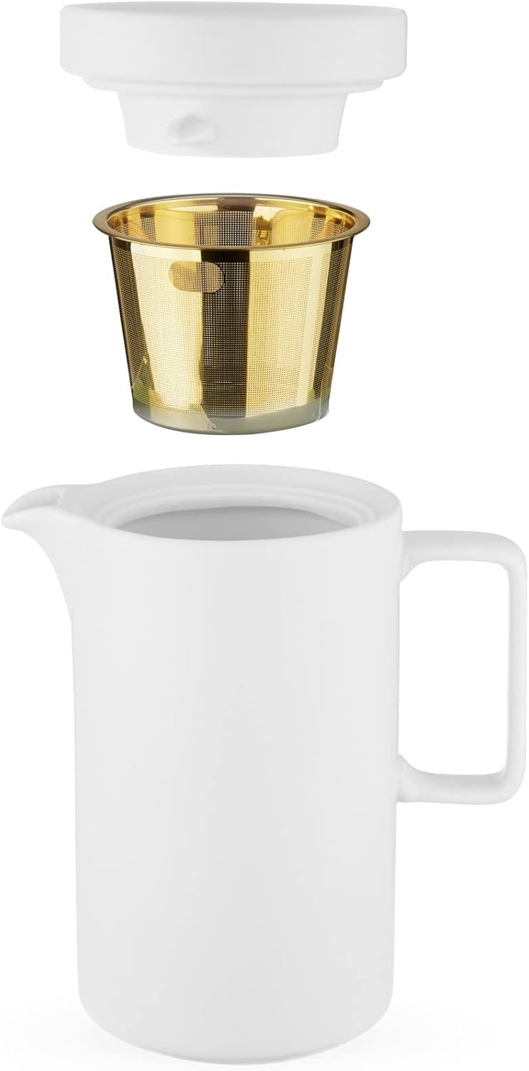 8 reviews for Pinky Up Jona Teapot, Modern Ceramic Loose Leaf Tea Infuser with Lid and Gold Infuser Basket, Set of 1 42 Oz White Stoneware