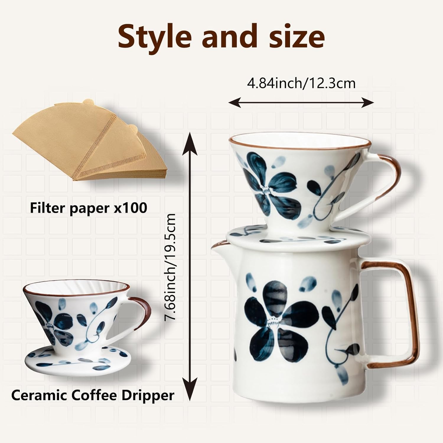 Top Ceramics:Our ceramic coffee filter are made from a special kiln with artificially painted patterns that are unique and have a single-hole design at the bottom of the cone for easier operation