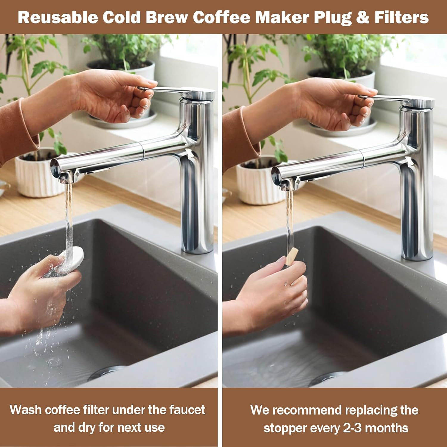 【High Efficiency Filtration】- It is easy to Filter out coffee grounds and other impurities. The reusable stopper is soft and can fit well with the hole to prevent water leakage.