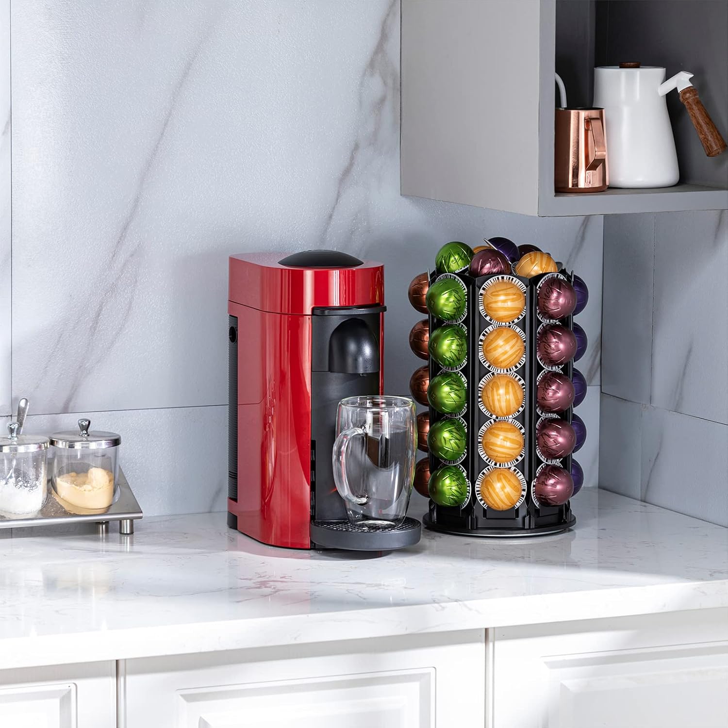 Rice Rat Coffee Pod Carousel Holder with Central Additional Pods Storage for VertuoLine Pods (40+ pods)