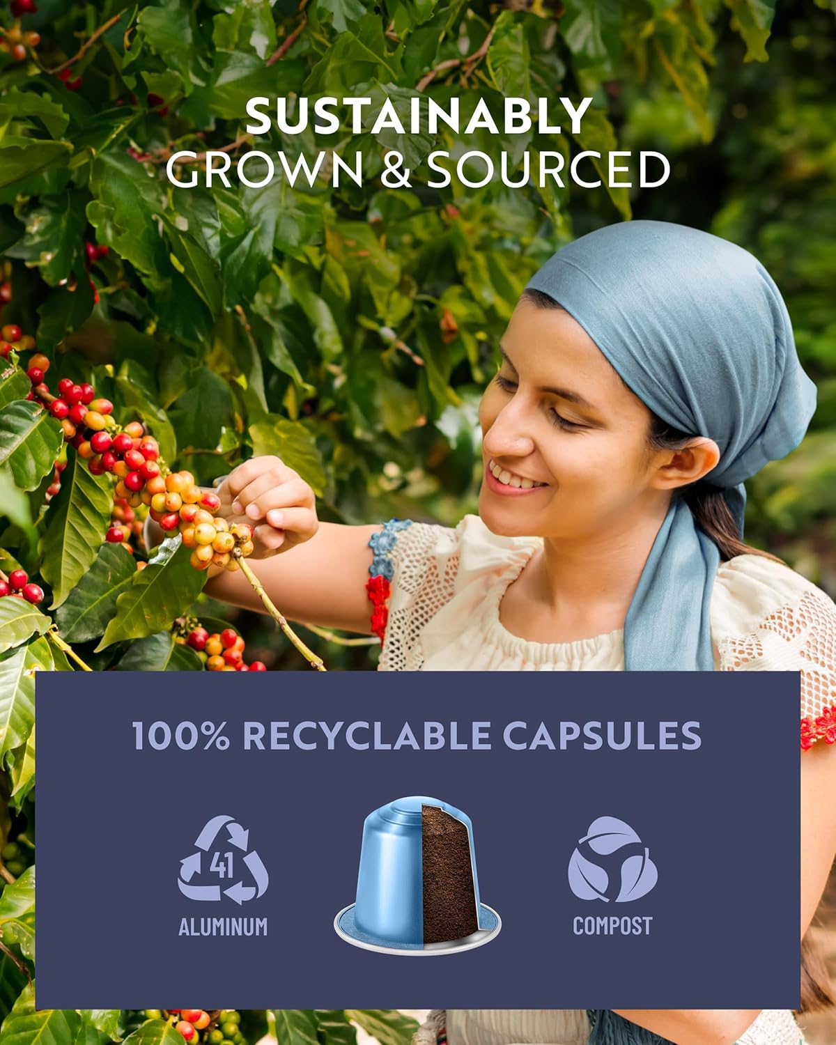 Sustainable: Rosso reserve coffee is sealed in airtight aluminum pods to protect and preserve the coffee for the best freshness, crema, and body. Our espresso capsules are made of fully recyclable aluminum. Simply remove the used grounds, which can be composted like any other food waste, and place the remaining capsule into your recycling bin. It’s that simple