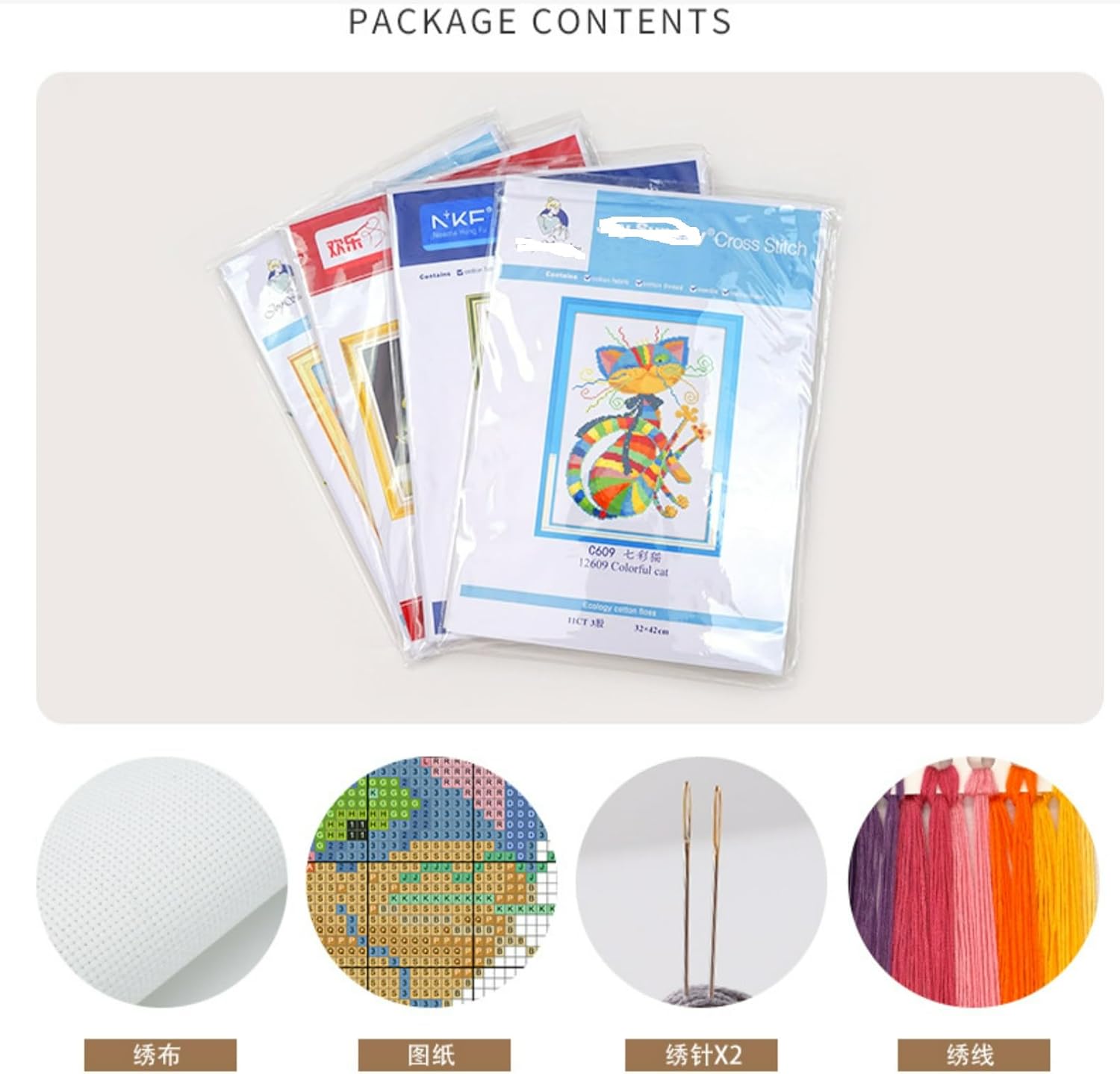 [Package & Size] Fabric Size: 18.9×24 inches; Pre-sorted thread cardboard, 11CT Pre-printed cotton fabric, High-Definition pattern, pre-sorted embroidery thread, 2×needles, 1× English Instruction & after-sale service guide card. We provide 30% more threads than enough.