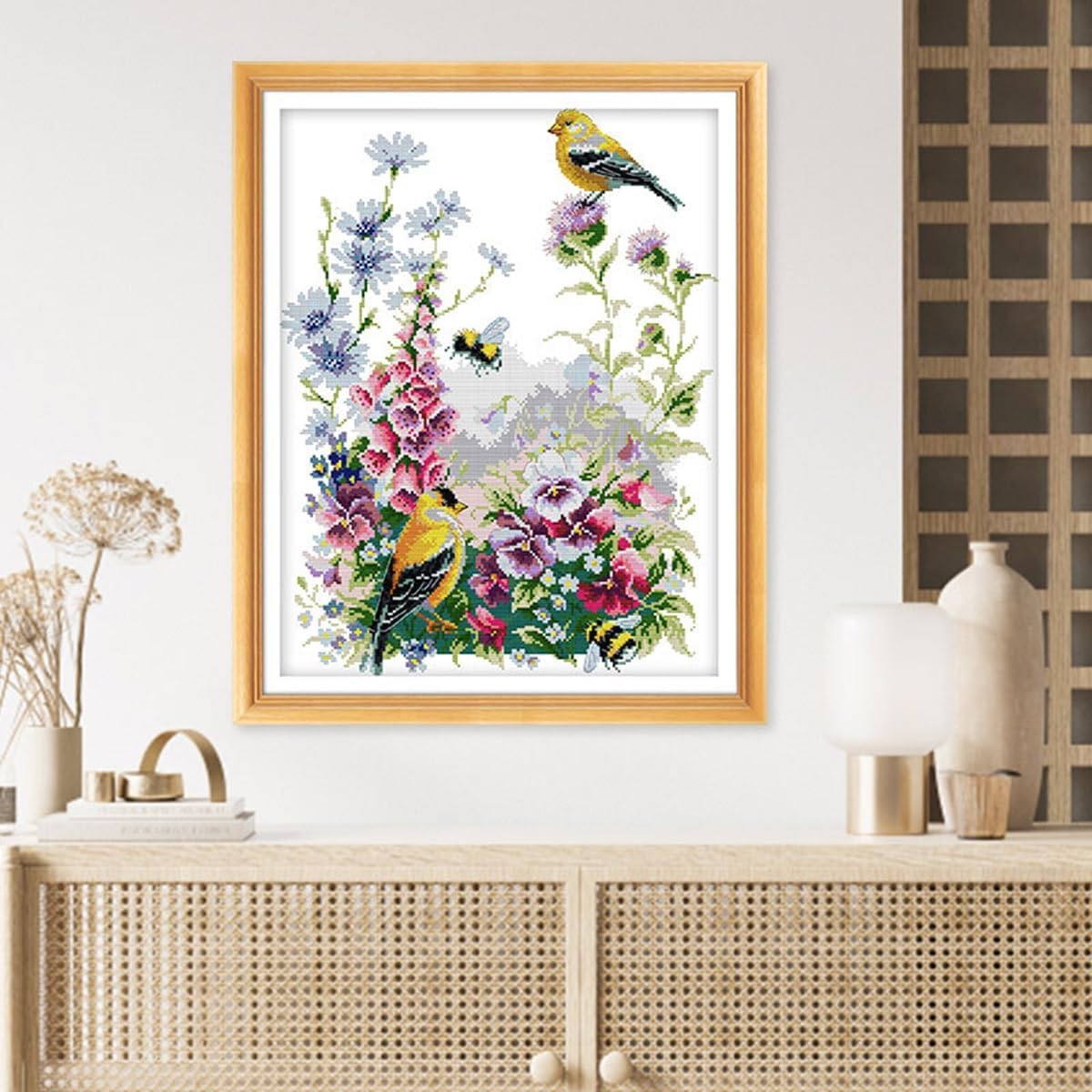 Rosyfoxes Cross Stitch Kits Stamped Full Range of Embroidery Starter Kits for Beginners DIY 11CT 3 Strands – Printed kit Bird and Flowers (Printed) 18.9×24 inches