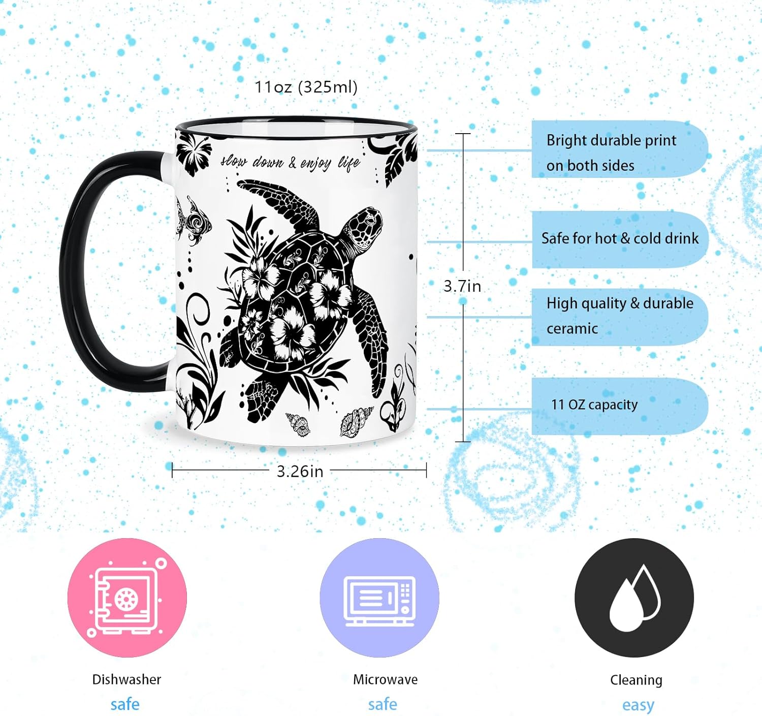 【Sea Turtle Gifts for Women Men】There are two sea turtles on the top of the cute mug, they are swimming freely and enjoying themselves in the sea, just like the text “slow down & enjoiy life”, when we hold this sea turtle mug to drink coffee or tea, our heart will become calm. This Turtle Mug is a great gift for anyone who loves turtles or nature.