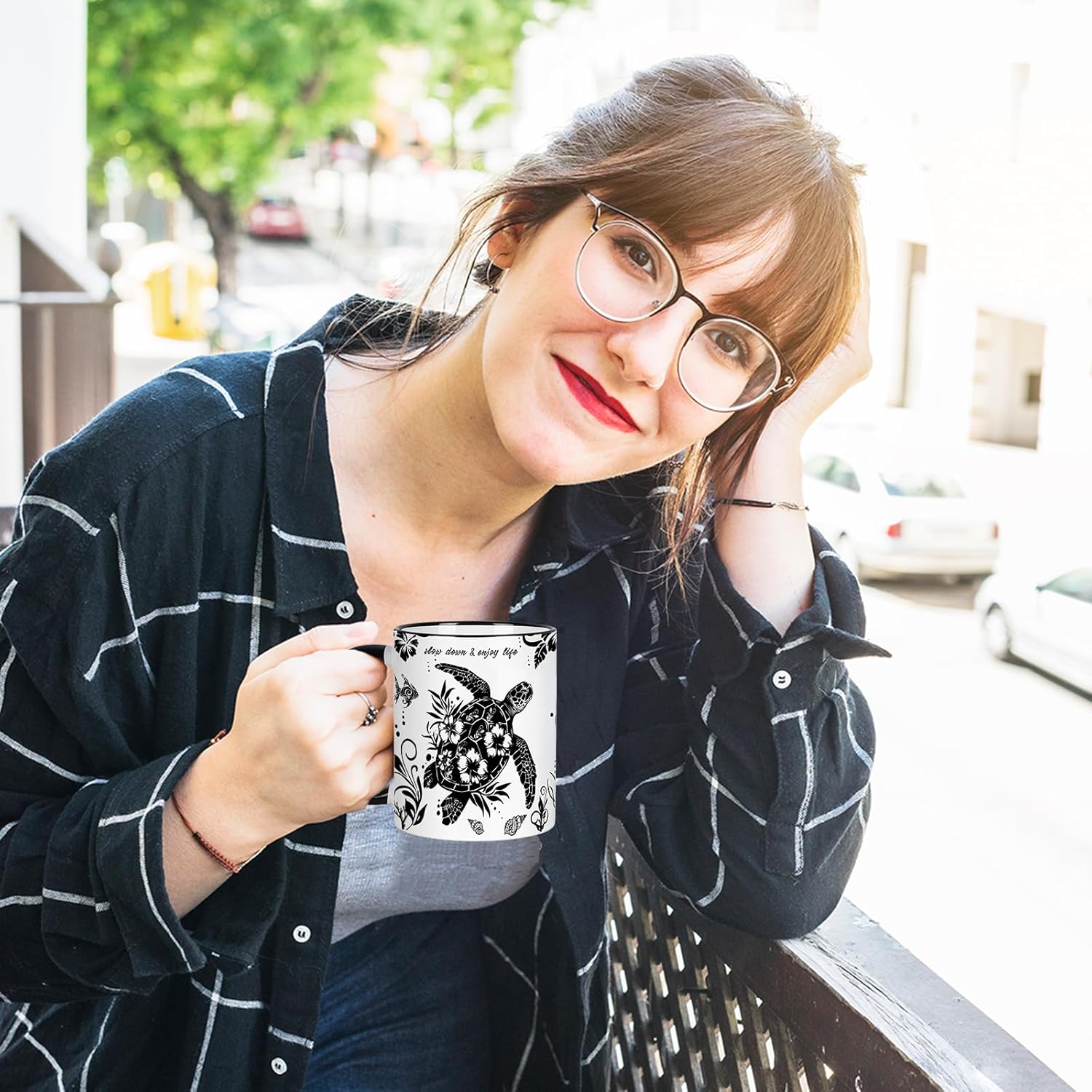 Sea Turtle Coffee Mug 11 Oz Sea Turtle Gifts for Women, Boho Coffee Mug Cute Black and White Coffee Mug for Women Birthday Gifts for Friends Coworkers Ceramic Mugs Microwave and Dishwasher Safe