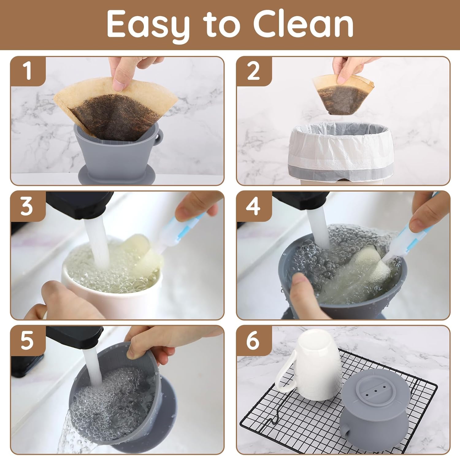 Easy to Use and Clean: This pourover kit is designed for convenience. Simply put the cone filter into the dripper, add coffee grounds and pour hot water, waiting the dripping process then enjoy a cup of fresh coffee. All components are easy to clean. The included cleaning brush makes cleaning a breeze, allowing you to spend more time enjoying your coffee and less time on cleaning