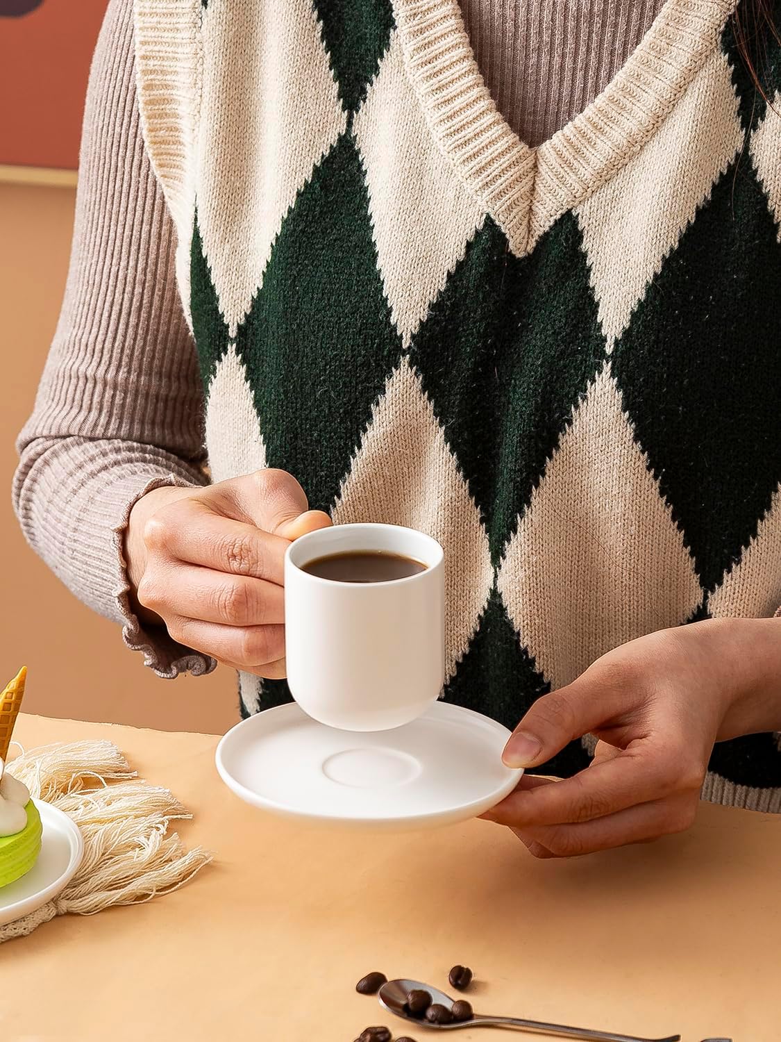At the most of your busiest time, choose to use this set of mini shaped cup and saucer, stop your busy footsteps, and make a cup of relaxed coffee for yourself, which will be a very cheerful emotion.