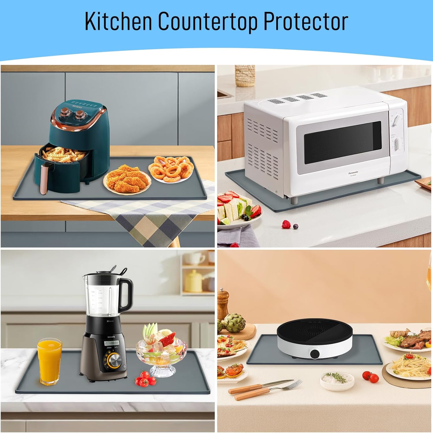VERSATILE SILICONE MAT. These silicone mats are actually versatile beyond a coffee bar mat. They are water-proof to be a dish drying mat. They are heat-resistant to be an insulation mat or trivet on your kitchen countertop, under tea kettle, coffee brewer, frother, etc.. The food-grade silicone makes it also reassuring to put kitchen utensils, flatware, fruits or food directly on it. Not only in household, you may also use them in your office break room or a cafe.