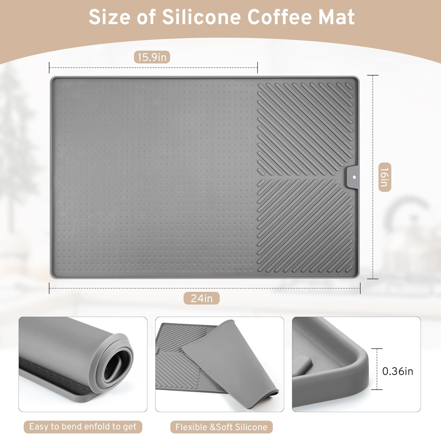 VERSATILE AND MULTI-USE: From coffee bars to kitchen counters and beyond, this mat adapts to various uses. Whether as a silicone dish drying mat, coffee maker mat, or general countertop protector, it meets diverse needs with style. Its versatility makes it a valuable addition to any coffee station or kitchen setup.