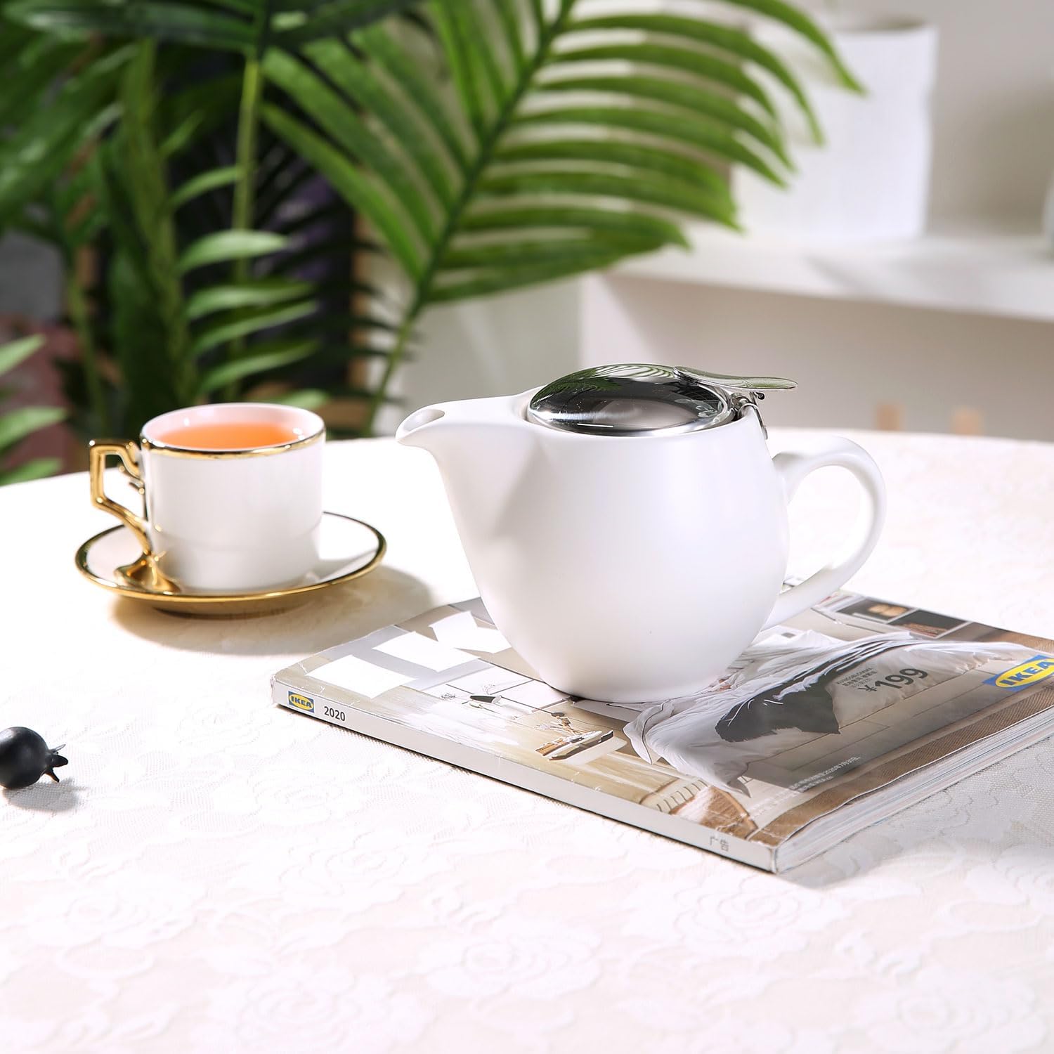 CERAMIC TEAPOT WITH INFUSER – The teapot has a extra fine stainless steel tea infuser, perfect for varieties of teas, loose leaf tea, blooming tea, tea bags.
