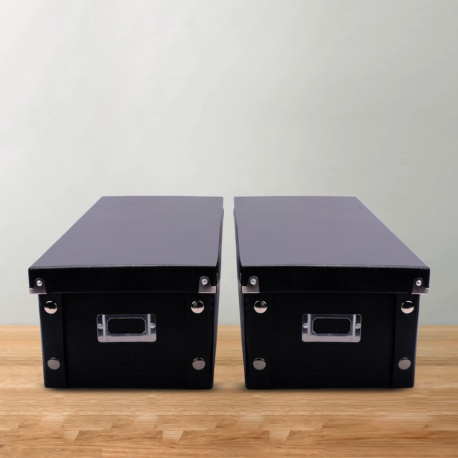 We bought six of these to store our DVD collection. I wanted something attractive and reasonably sturdy, as we would be placing these on a shelf at the bottom of a new tv stand. The black finish with chrome metal corners and snaps make for an attractive package, and there are file drawer-type label holders in which you can place custom labels to track the bins’ contents.My one complaint is that, of the six boxes we bought, I found 25%-50% of the snaps on three of the boxes would not work. I had to take pliers to the nipple for the snaps and squish them down a little before they would snap. For the other half of the boxes, everything snapped together perfectly. This was an unnecessary layer of aggravation. I’m not sure if the problem was quality control in the production process for the snaps or that they were somehow deformed in shipping, but suspect it’s a QC issue.That said, with some pliers and patience, I was able to assemble everything and am very happy with how they look.