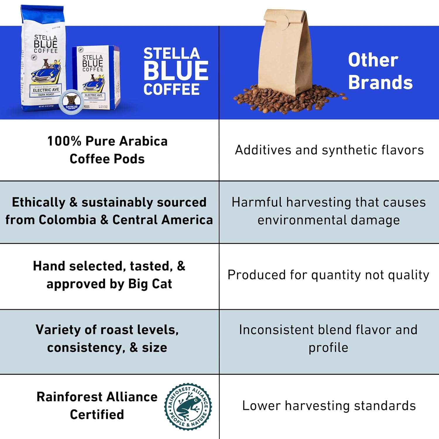 STELLA BLUE Fresh Whole Bean Coffee | Electric Avenue Blend | 100% Arabica DARK Roast | Ethically & Sustainably Sourced from Central America | Helps Support PAWS Chicago | 12 ounce Bag