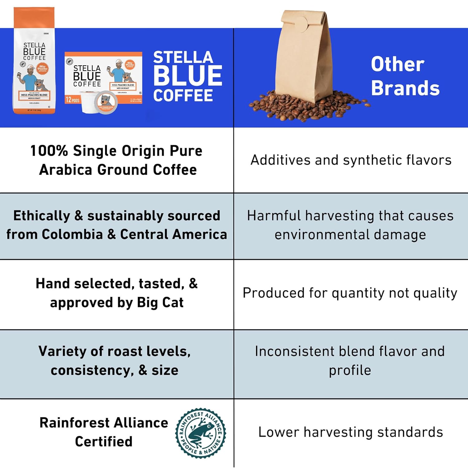 The Stella Blue Dark Roast is my favorite blend from Stella Blue (Iâve tried light and medium as well). It has such a strong coffee taste that I would put up against any other major coffee brand. You can taste the quality and I love that when you purchase it you are also supporting animals. This coffee brand needs to be taken seriously, itâs very good.