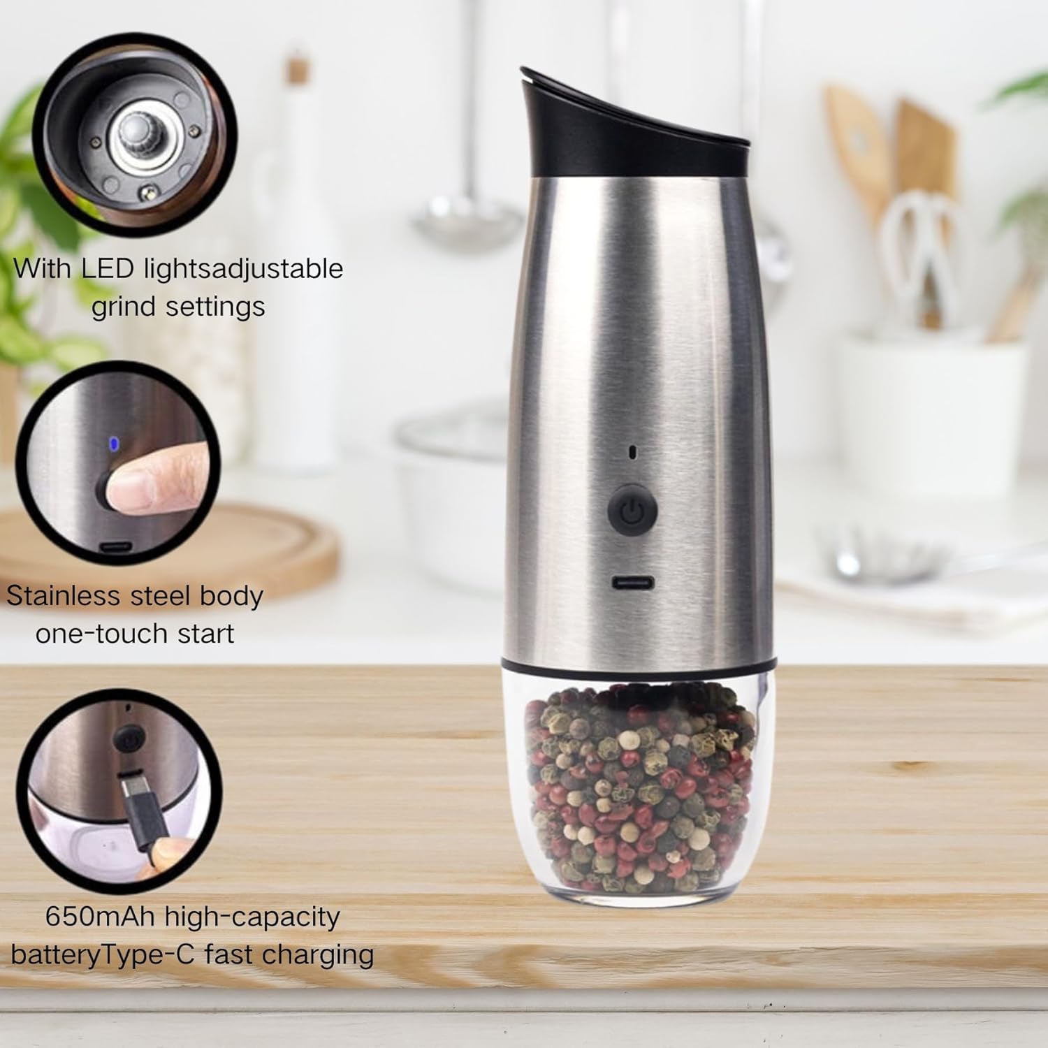 Efficient Grinding: This pepper grinder employs advanced grinding technology to quickly and evenly grind peppercorns, ensuring fresh grinding results with every use