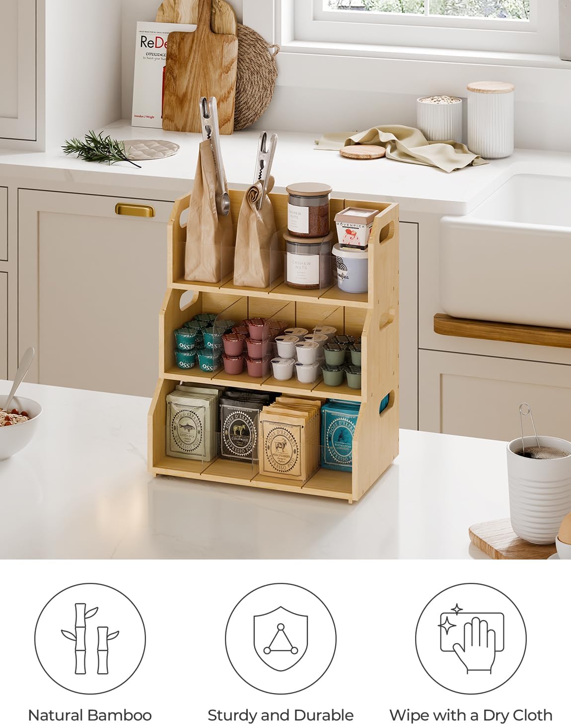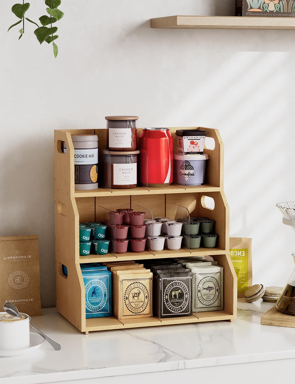 Storageworks 3 Layer Stackable Bamboo Tea Bag Organizer, Tea Organizer for Tea Bags, Tea Box Organizer Storage Box with 12 dividers, Tea Holder, Wood Tea Box for Cabinet and Pantry
