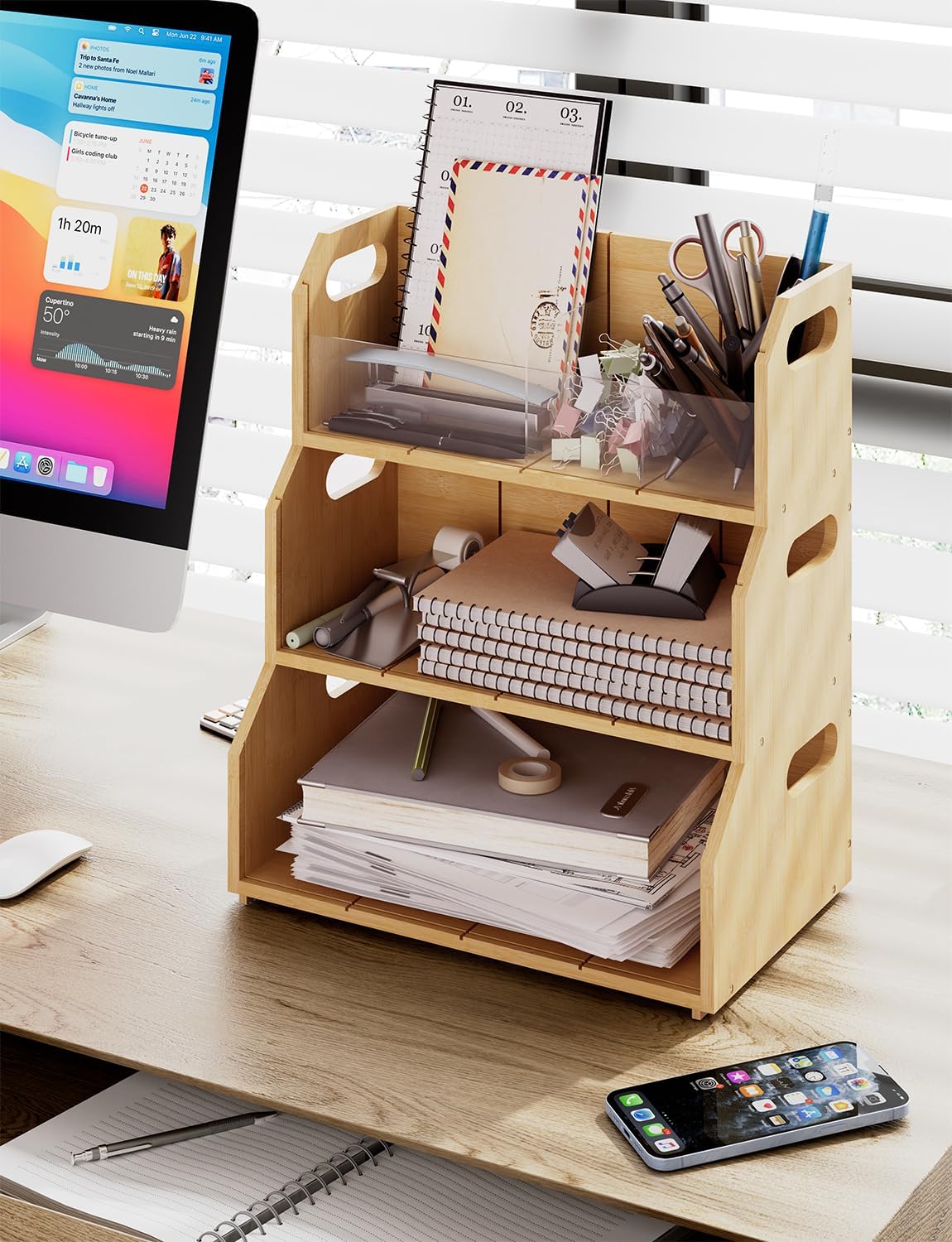 I decided to use this in sewing room for some very tidy vertical and visible sewing notions.I really needed more space usage without more shelving.The acrylic clear sections allow for easy finding of items and close access.The materials of bamboo are elegant and a balm to the eyes.Highly recommended. Very nice organizer. Love this brand
