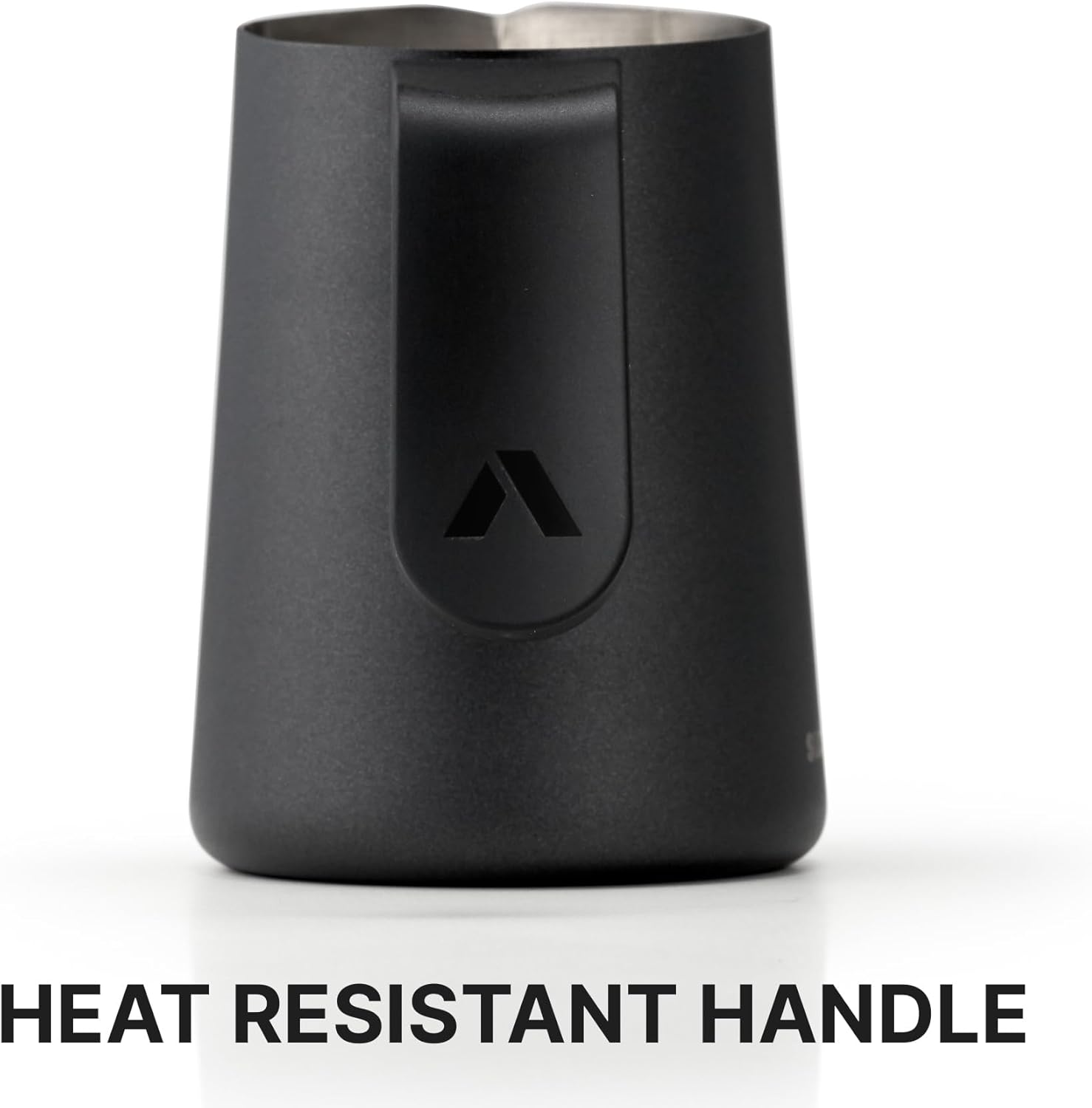 The only latte art pouring jug featuring a comfortable ergonomic heat-resistant handle.