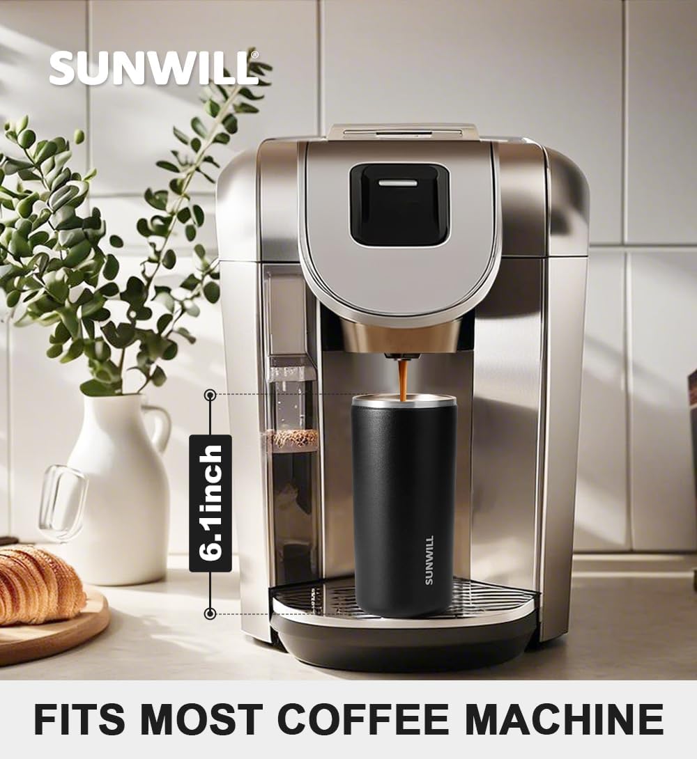 SUNWILL Insulated Coffee Mug with Lid, Leak Proof Tumbler Stainless Steel, 12 oz Travel Cup for Office, Home, Powder Coated Black