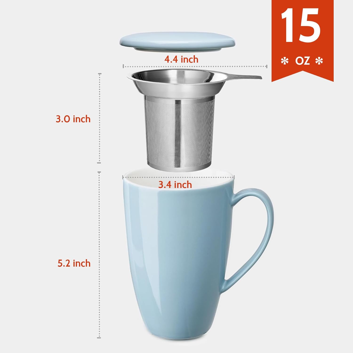 Sweese 15 OZ Porcelain Tea Mug with Infuser and Lid, Loose Leaf Tea Cup, Gifts for Tea Lover, Bluish Grey