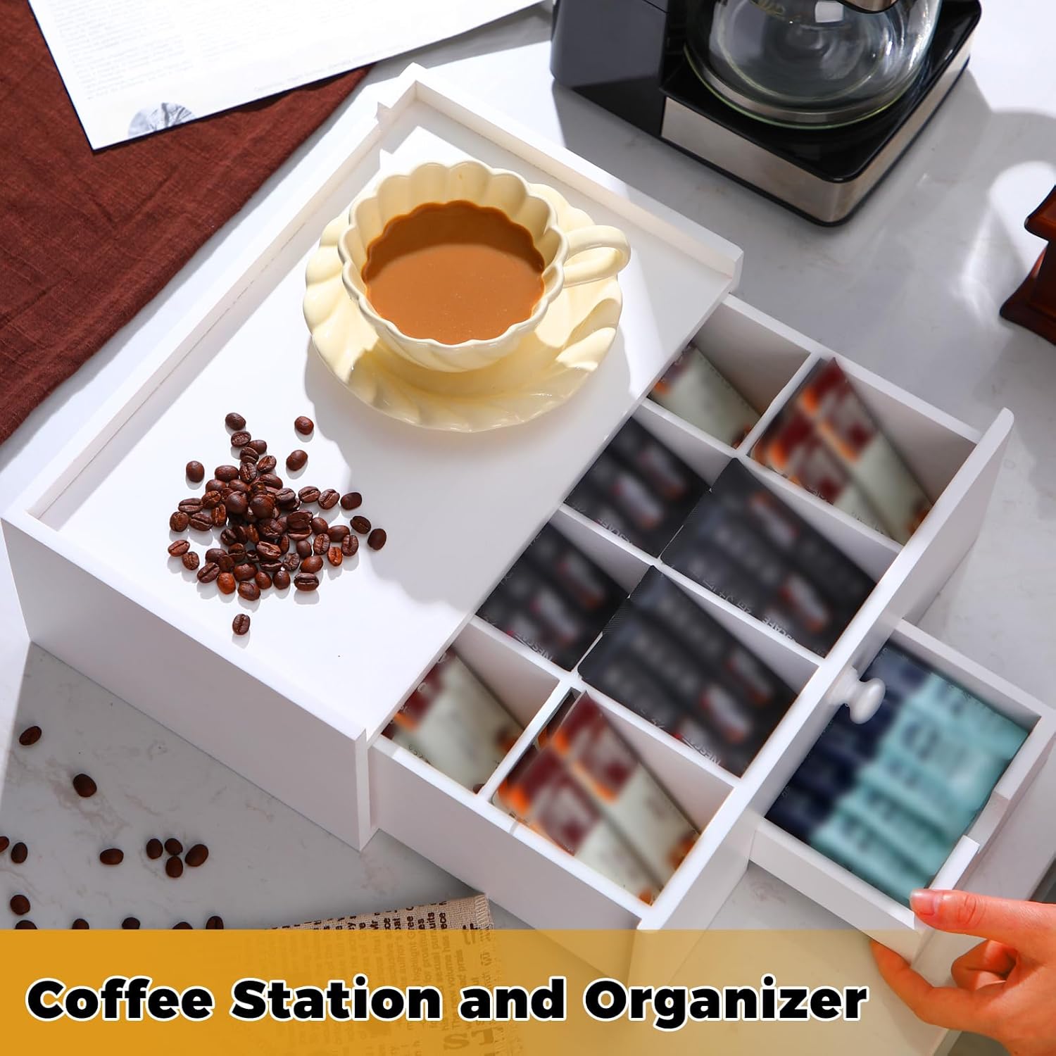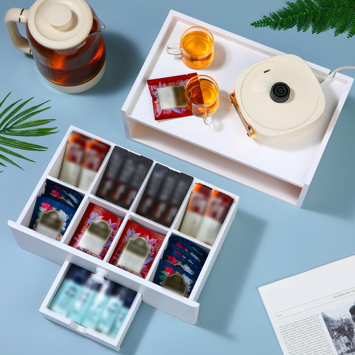 Organized and Easy to Access: the tea bag holder allows you to store a variety of blended teas, ensuring that every tea break is a pleasant experience; It has 8 compartments to ensure that each tea bag has its own place; In addition, the slide out drawer is nice for placing additional tea sets, tea boxes
