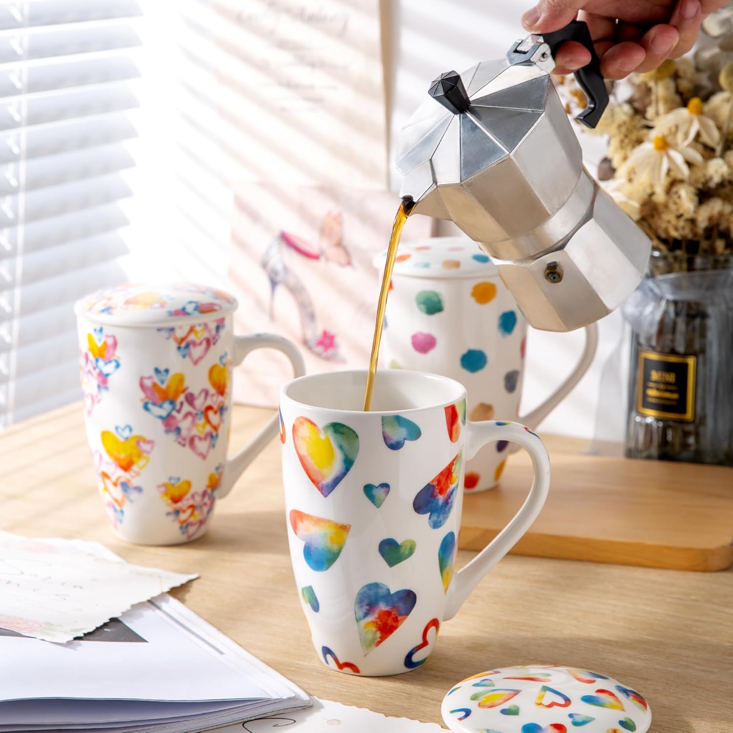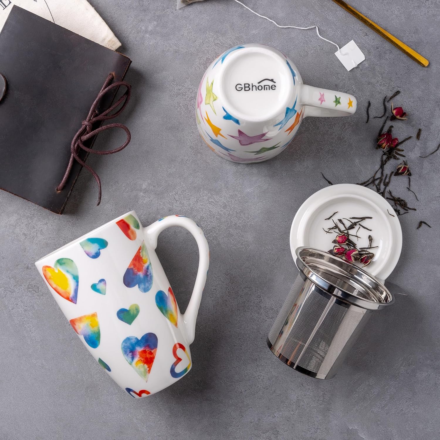 GBHOME Tea Mug with Infuser and Lid, 18 Ounce large Ceramic Loose Leaf Tea Cup,Microwave, Dishwasher Safe Tea Steeping Mug,Pefect Gift For Tea Lover