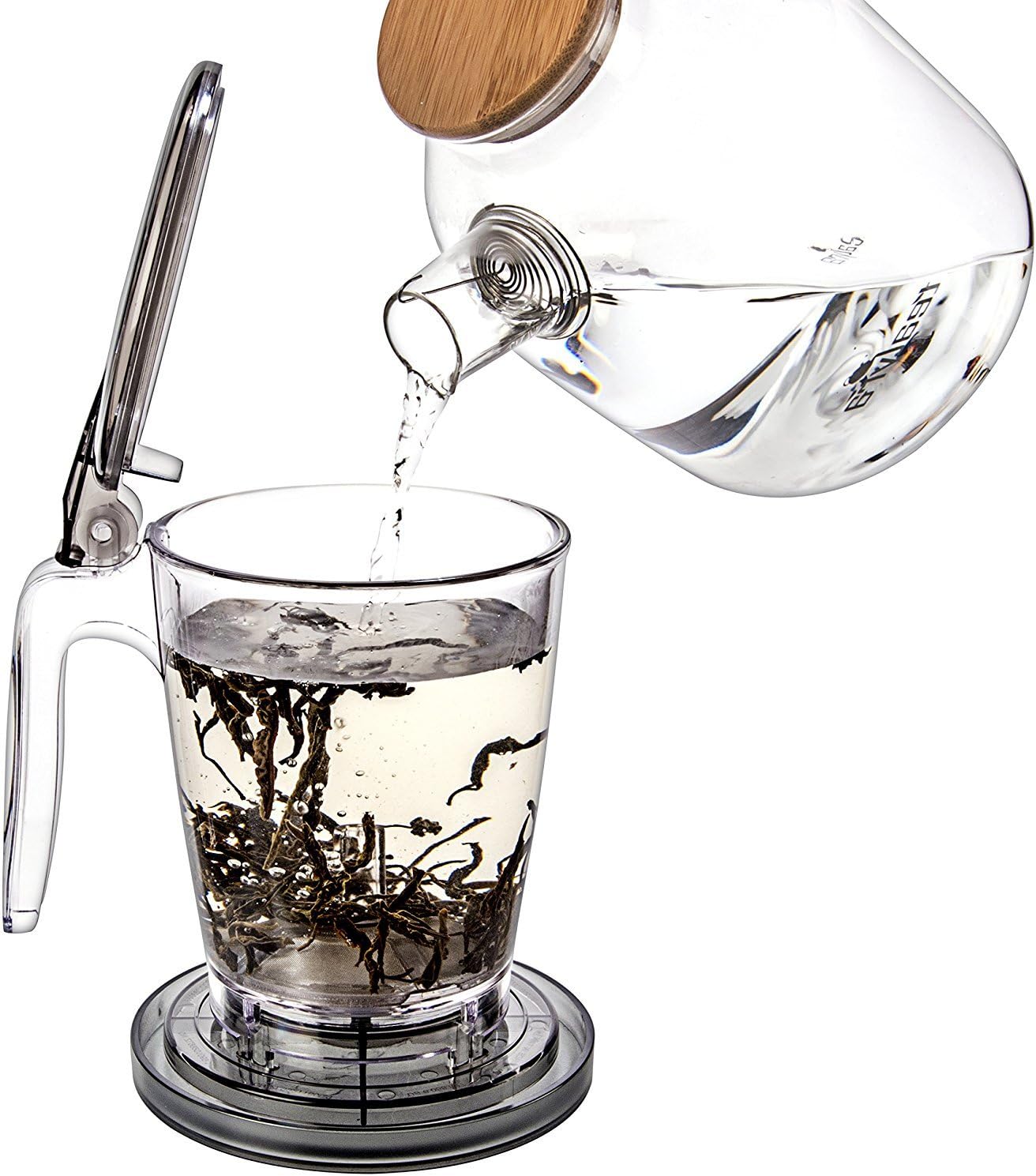 I drink lots of lose-leaf tea, and am very picky about the quality of what I purchase, and the resulting taste. I am also a food traditionalist, and don’t like gimmicks. But I have embraced this infuser with enthusiasm. The reasons:1. it does a great job and gives me a lot of control over the brewing. I can see the tea leaves unfold and the color of the tea as it darkens, and stop the infusion at the right time.2. It is very easy to clean. I just dump the tea leaves in the trash, and quickly rinse off the ones that stick to the infuser. It less messy than the traditional infusers or strainers that often rinse off poorly.3. The straining fabric at the bottom of the infuser is of high quality, and does not let through the small tea particles that break off from the leaves during transportation and handling.I was initially skeptical, but this infuser was cleverly designed, and I decided to give it a try. I do not regret it, and I highly recommend it to all loose-leaf tea drinkers. (Not needed if you use tea bags.)One suggestion to the manufacturer: add a scale to the infuser, so that the user easily knows how much liquid is being poured.