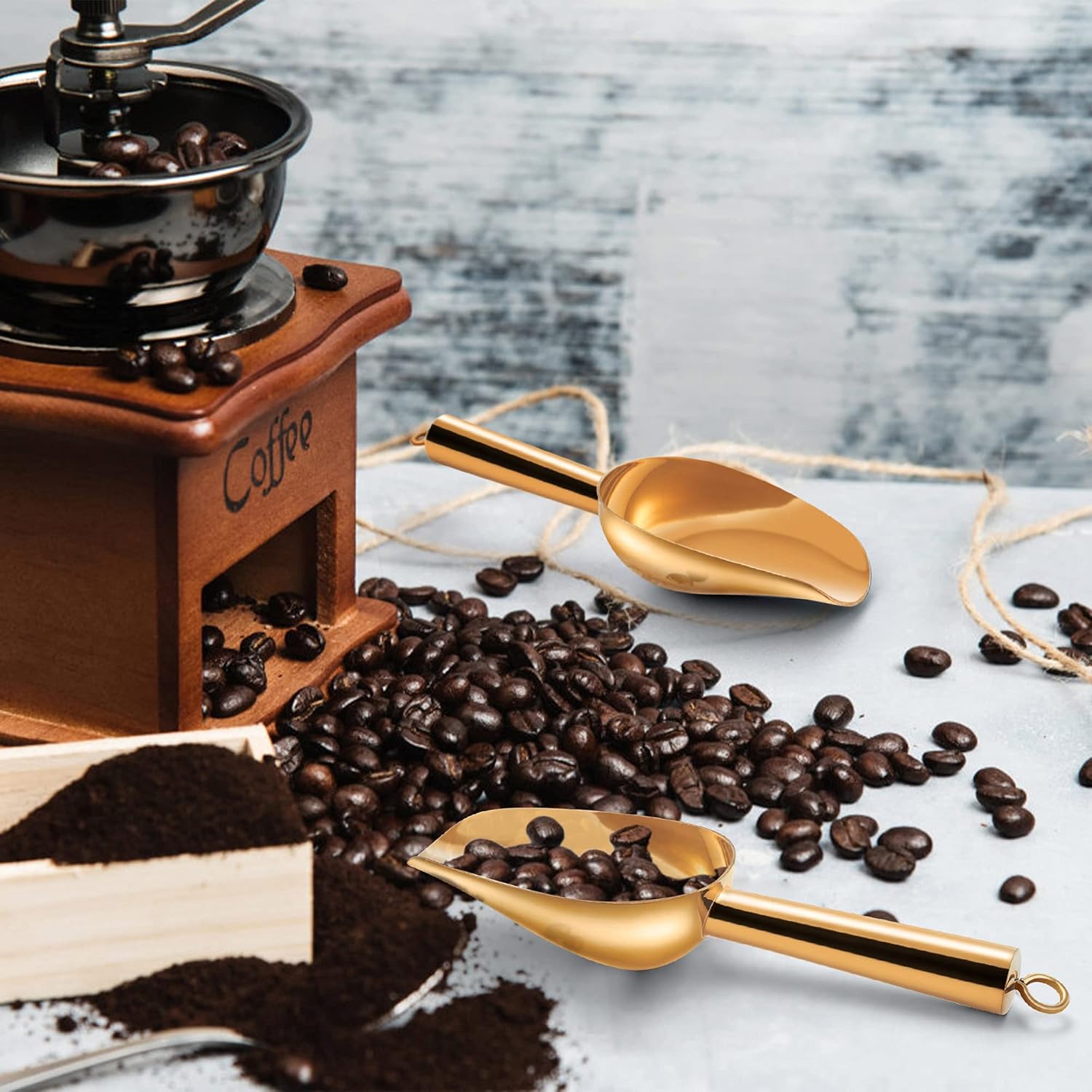 PERFECT FIT IN CANISTER: TeamFar small gold scoop is made of premium stainless steel, Great replace the fragile plastic scoops or aluminum scoops, 3 oz mini scoops perfect fit in canisters or jars, Versatile for scooping dry goods, Spice, Sugar, Candy, Popcorn, Coffee beans, Flour, ice cube etc.