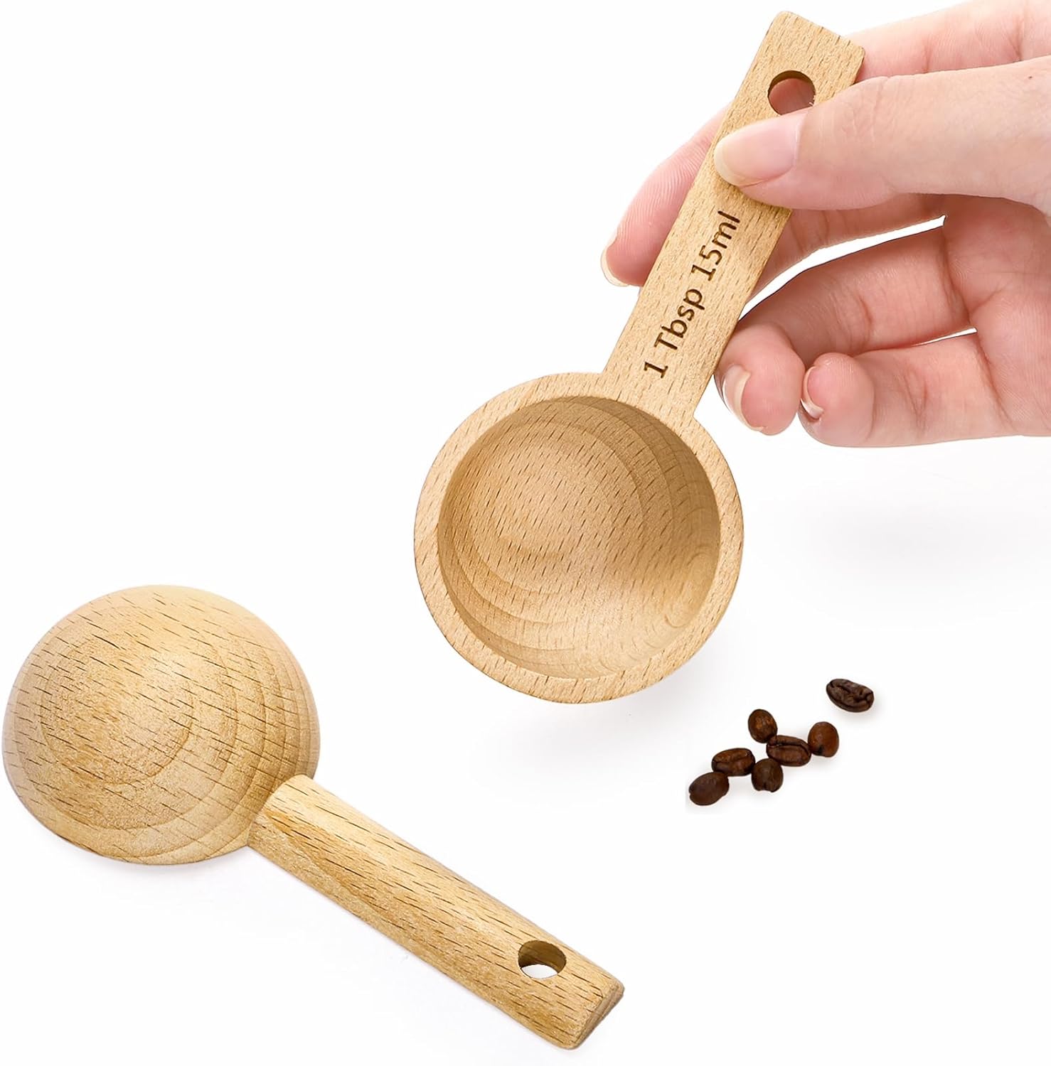 These coffee measure scoops are made of beech wood material, durable and not easy to deform. Natural wooden handmade product, the texture of each product will be slightly different.