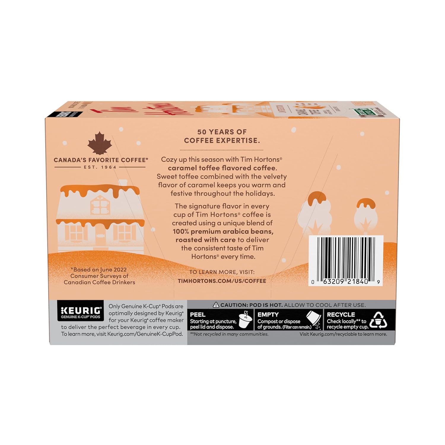 Tim Hortons 12ct KCUPs, Caramel Toffee Flavored 100% Arabica Coffee