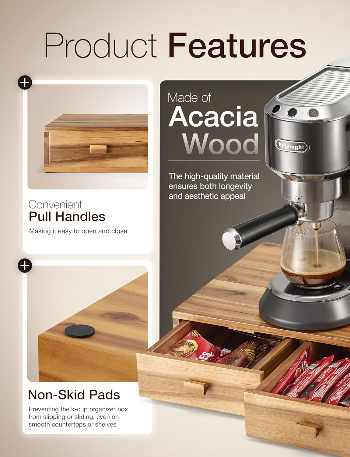 Ideal for Coffee Machines: The flat surface of the box is perfect for placing your coffee machine stand on top or other compatible coffee makers. Save counter space by keeping your machine in one organized area