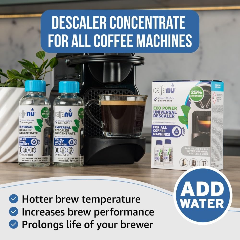 🍃 BENEFITS OF USE – Contains 400ml which is enough for 4 doses. Our kind to Earth Universal descaler is Phosphate Free and is a concentrated & fast acting liquid. This descaler liquid contains a sanitizing action whilst not staining or tainting. Regular descaling helps to increase the lifespan of your kettle, urn & of course coffee machine, as well as allcoffee machine accessories. Integral part of your Barista kit. Works brilliantly with Caffenu cleaning capsules.