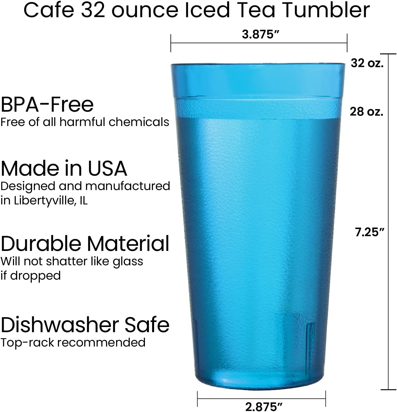 US Acrylic Café Plastic Reusable Tumblers (Set of 12) 32-ounce Iced-Tea Cups, Coastal | Value Set of Restaurant Style Drinking Glasses, Stackable, BPA-free, Made in the USA | Top-rack Dishwasher Safe