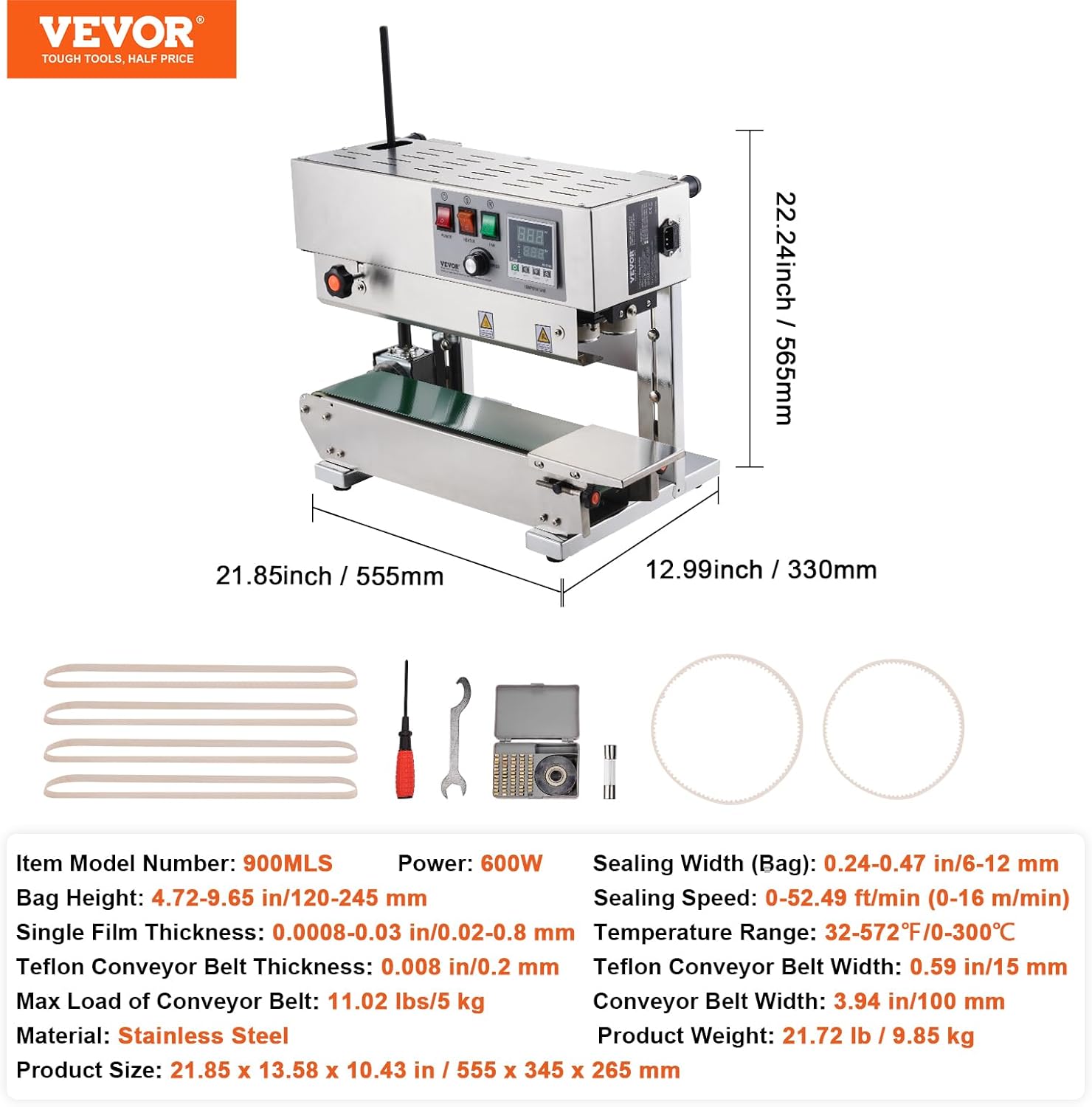 VEVOR Continuous Bag Band Sealing Machine, 0.24-0.47 in/6-12 mm Seal Width, Vertical Band Sealer Machine with Digital Temperature Control, Stainless Steel Bag Sealer for 0.02-0.8 mm Plastic Bags Films