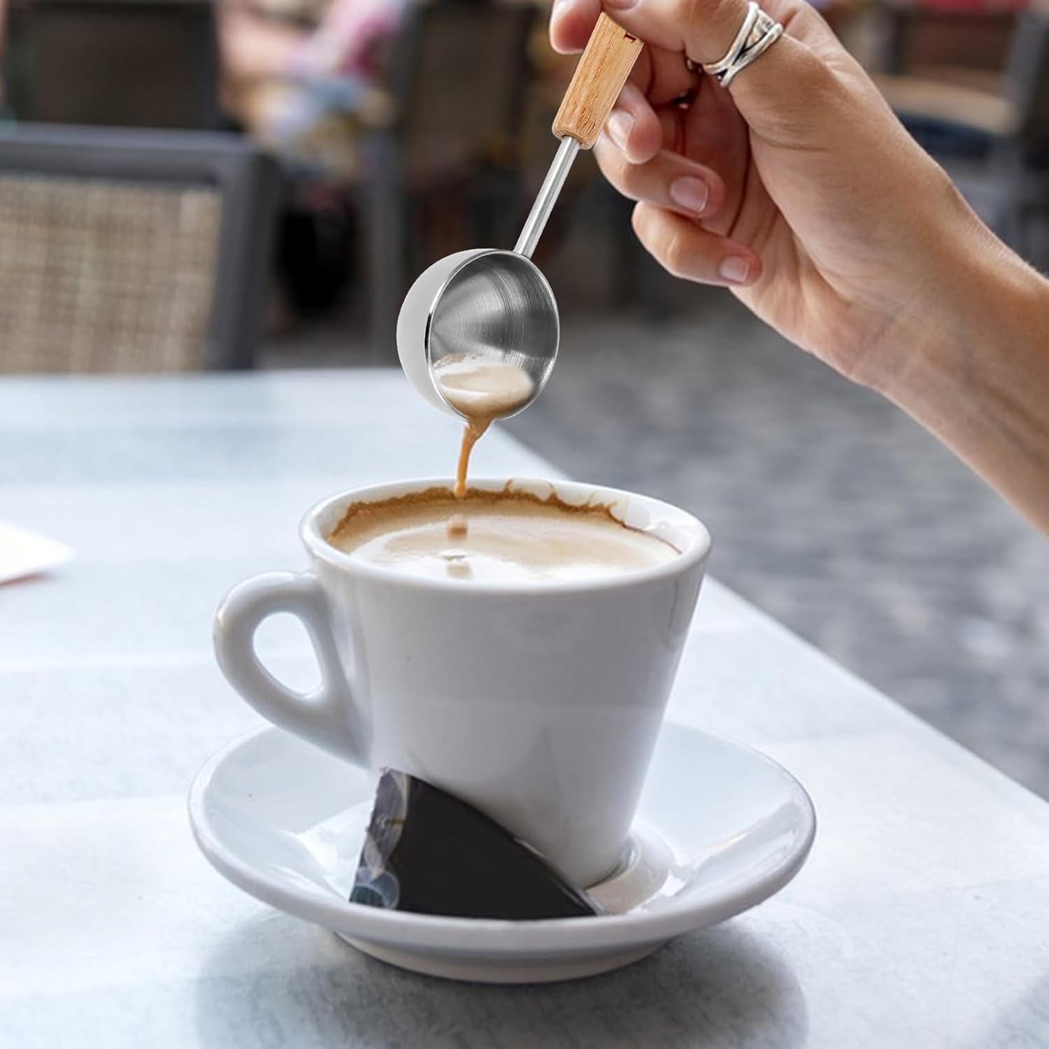 I absolutely love this Vintage Coffee Measuring Scoop! The 8ml capacity is perfect for getting the right amount of coffee grounds each time, and the stainless steel construction makes it durable and easy to clean. The long wooden handle adds a touch of elegance and makes it comfortable to use, even with deeper coffee containers. It’s versatile too—I’ve used it not just for coffee but also for measuring tea and honey. This scoop is now a staple in my kitchen, and I highly recommend it for anyone who enjoys precision in their brewing routine!