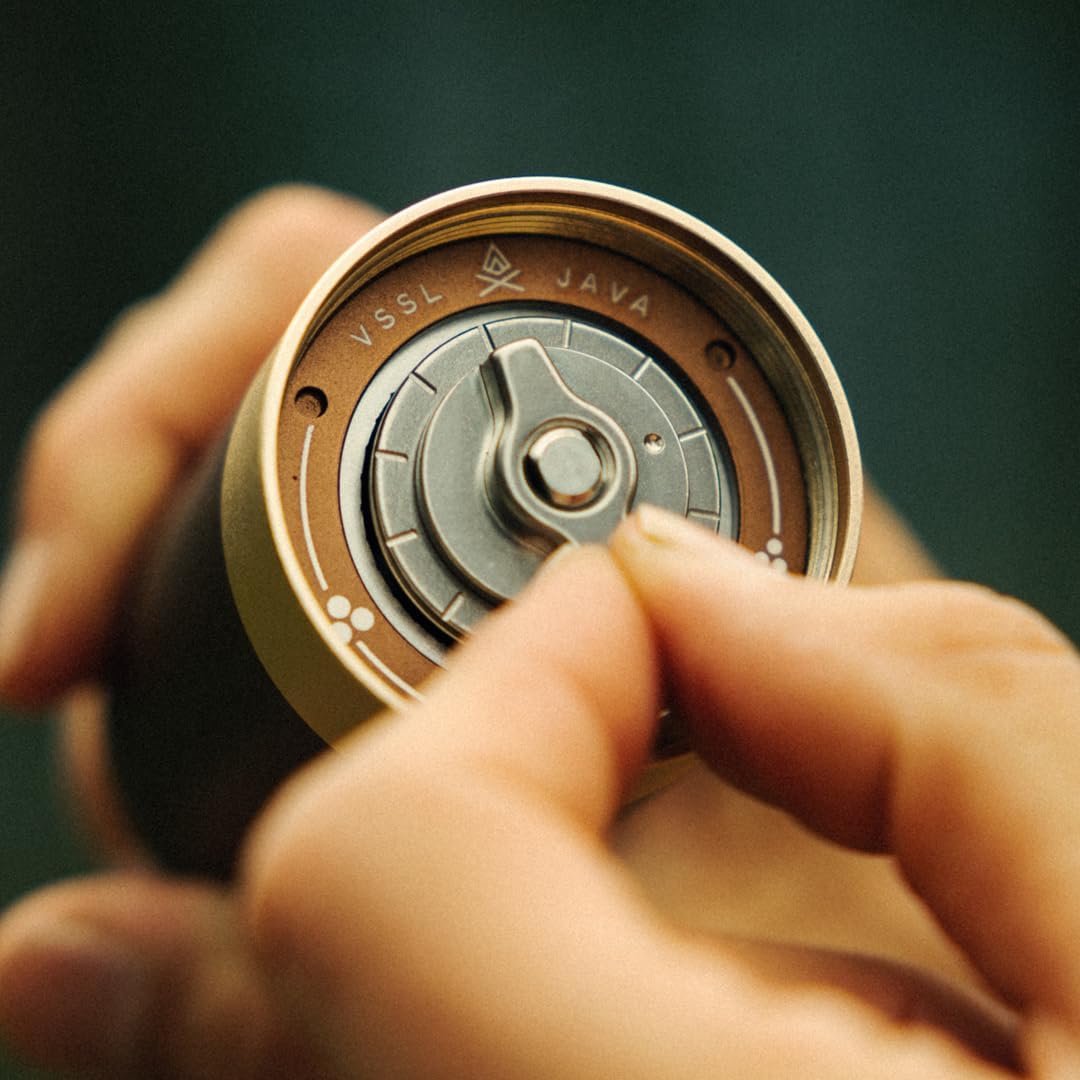 VSSL Java G25 Coffee Manual Coffee Grinder, Up To 25 Gram Capacity, Stainless Steel Conical Burr, Bronze