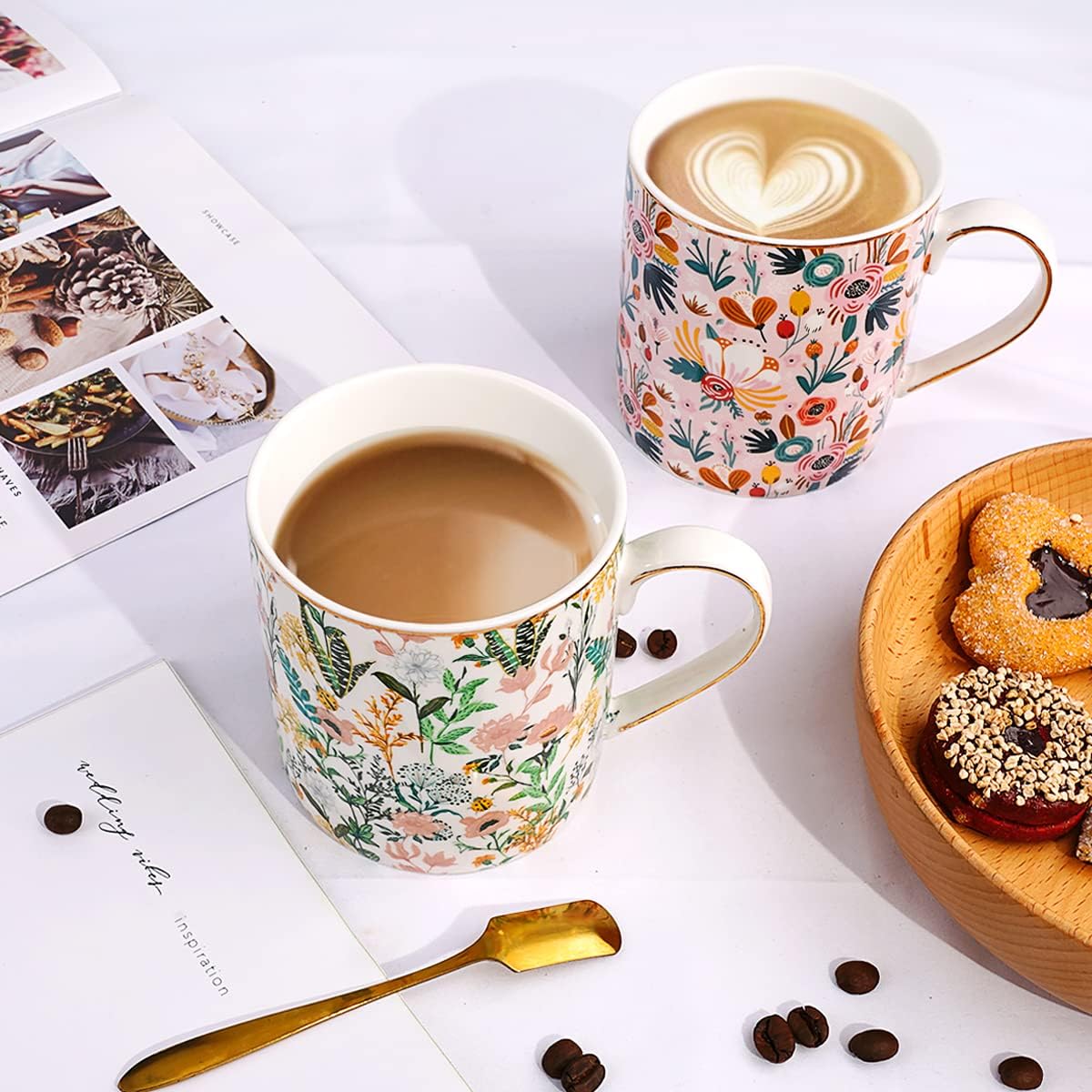Cute Large Coffee Mug for Women: Package incudes 1 x floral print coffee mug, 14 OZ, it is the best companion for your coffee time. The coffee accessories are designed to keep you motivated at home and office.