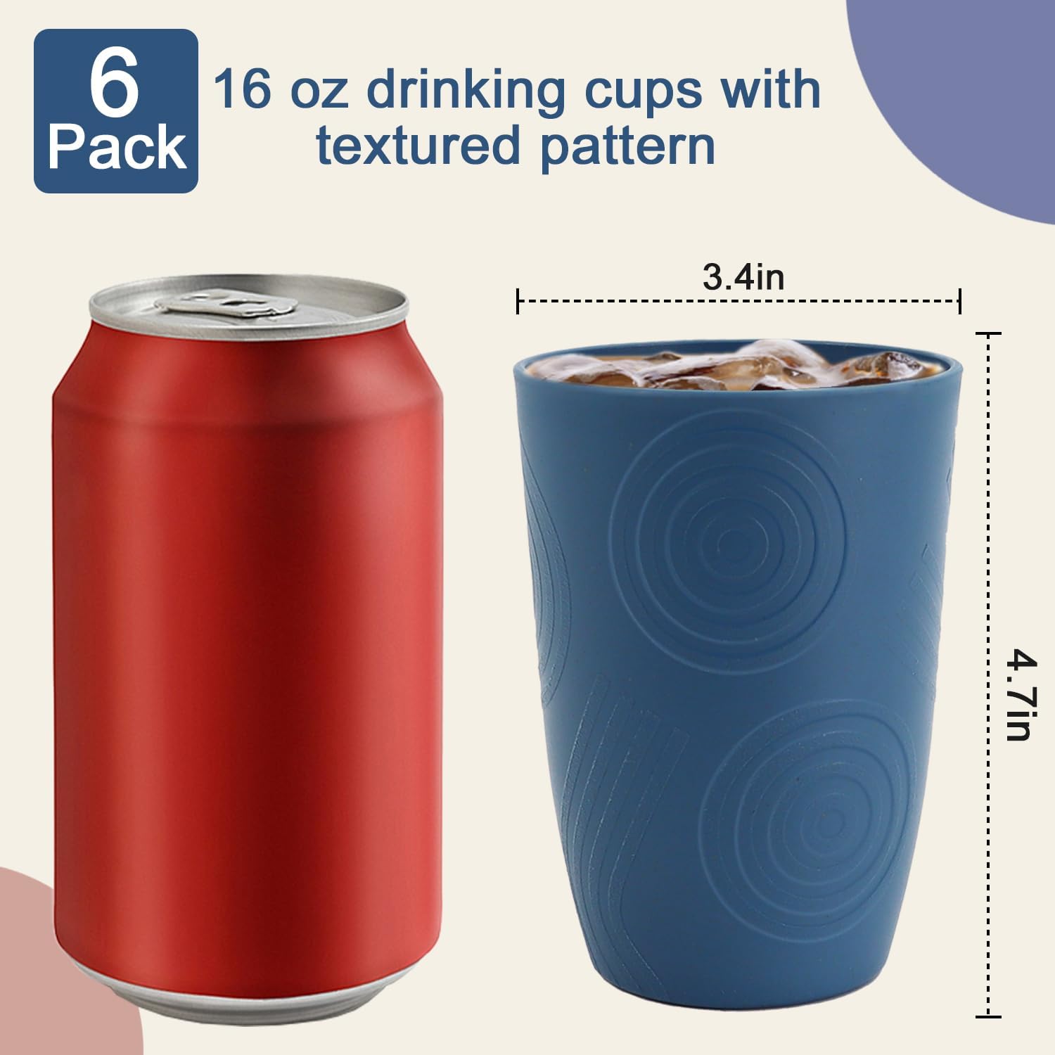 Wheat Straw Cups 6 Pcs 16 OZ Plastic Cups, Unbreakable Drinking Cups, Kids Cups Set for Kitchen, Alternative to Plastic Cups Reusable Dishwasher Safe Water Glasses (Multicolor)