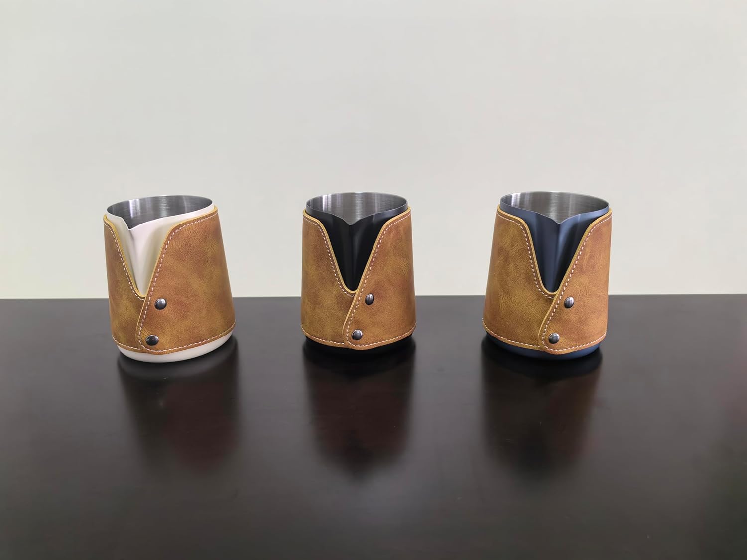 5 reviews for White Handleless Milk Frothing Pitcher 450ml(15.2oz), 304 Stainless Steel Steaming Cups with Pure Genuine Cowhide Cover, Espresso Machine Accessories for Coffee Bar, Latte Art Barista Tools
