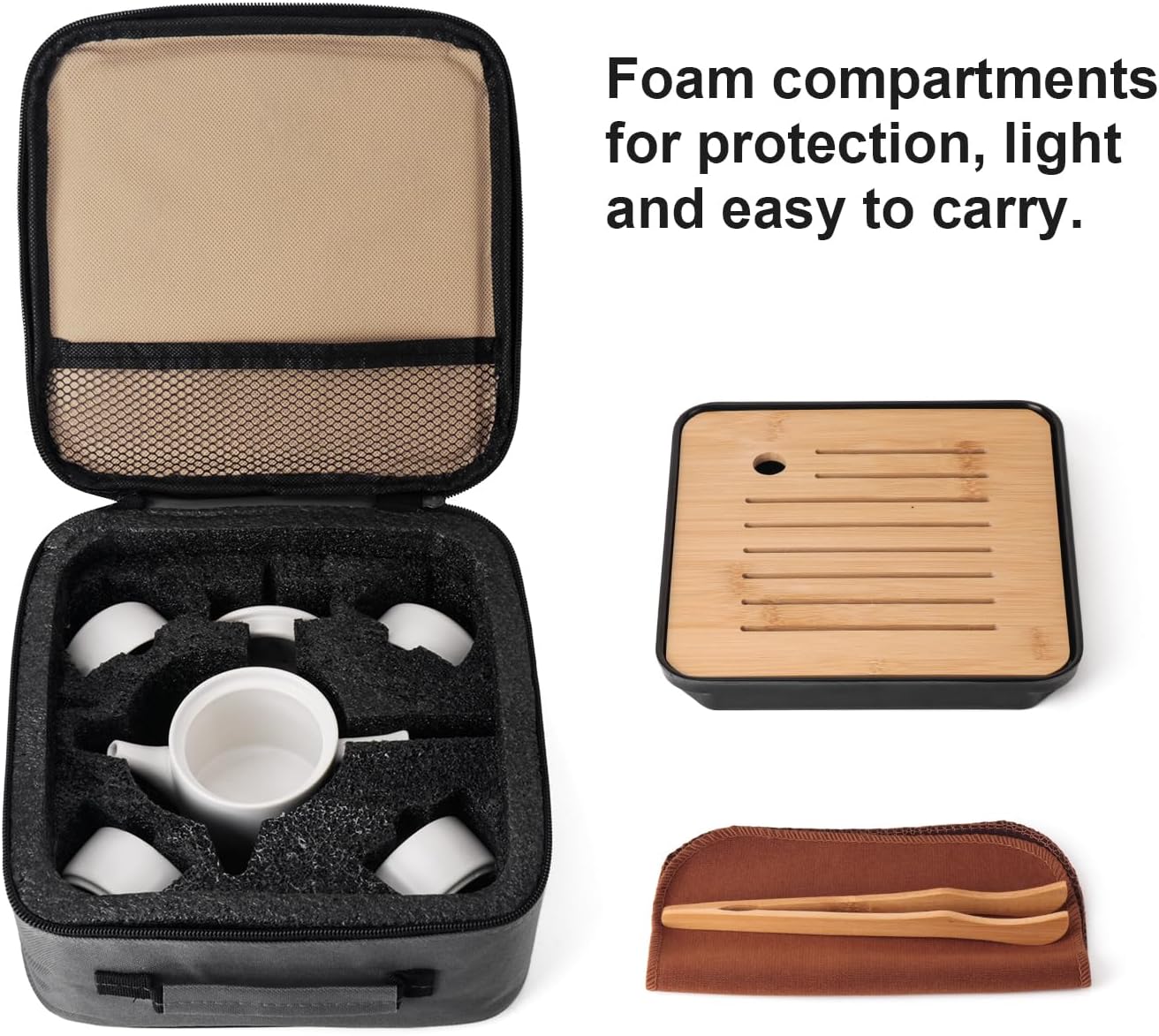 Amazing Present for Friends: What you get is Teapot x 1, Teacup x 4, Tea tray x 1, Tea clip x 1, Portable travel bag x 1