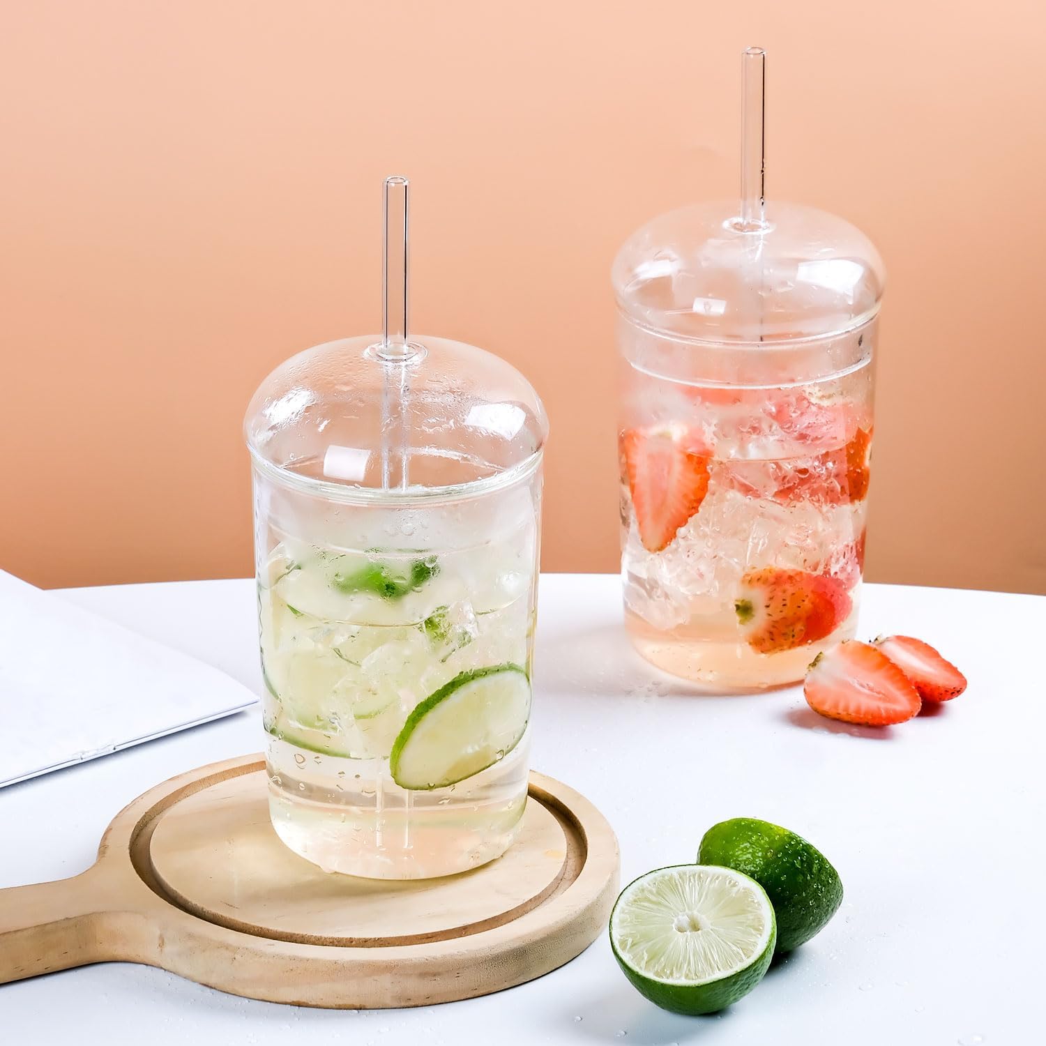 Clear dome coffee cups with lids glass – This beautiful glass cup and straw features clear dome shaped lid and sleek-designed cup. It’s heat resistant which is able to withstand extreme temperatures from 14 to 428 °F (-10 ℃ to 220 ℃).