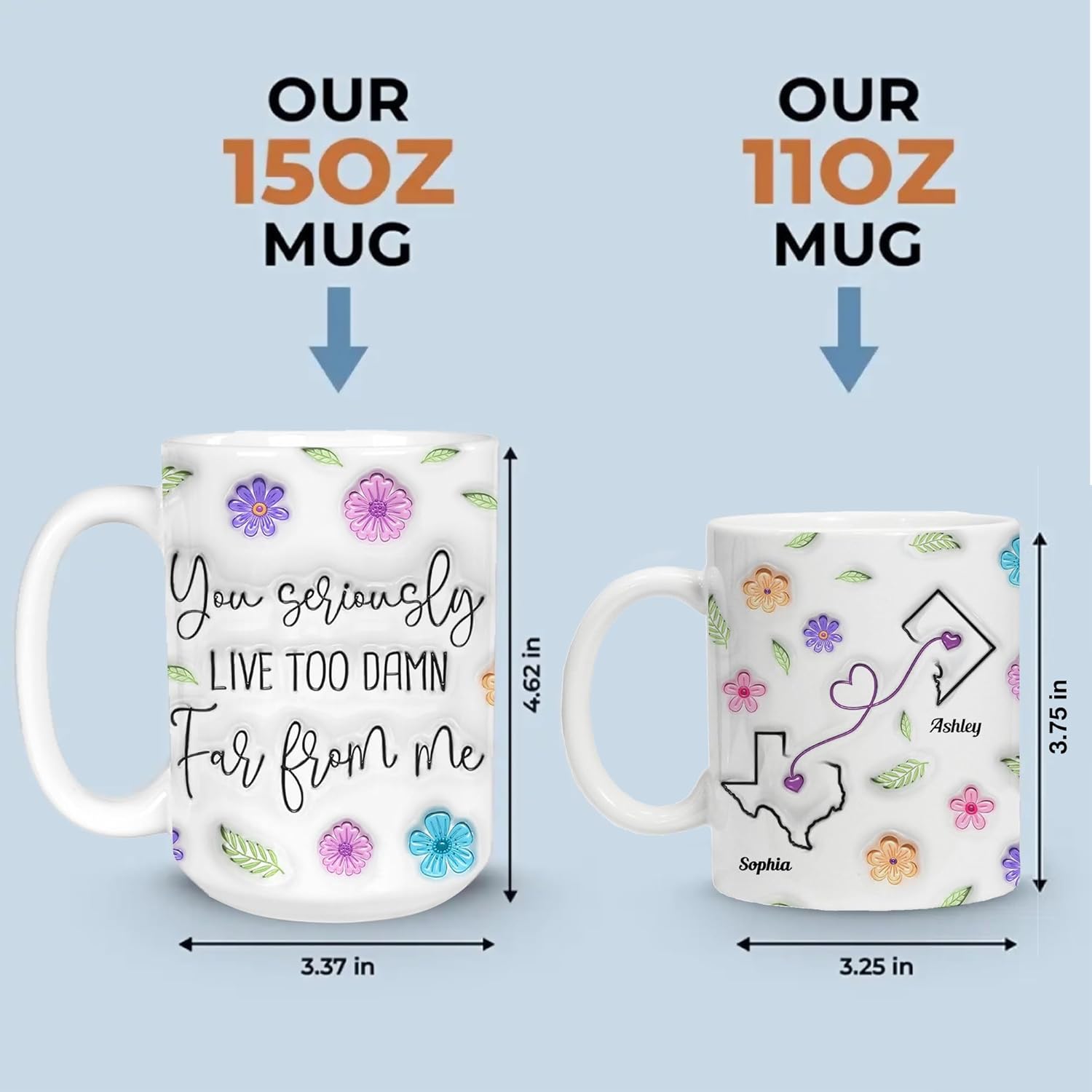 Wish You Lived Much Closer – Personalized Custom 3D Inflated Effect Mug You Seriously Live Too Damn Far From Me State to State Mug On Mothers Day For Daughter From Mom